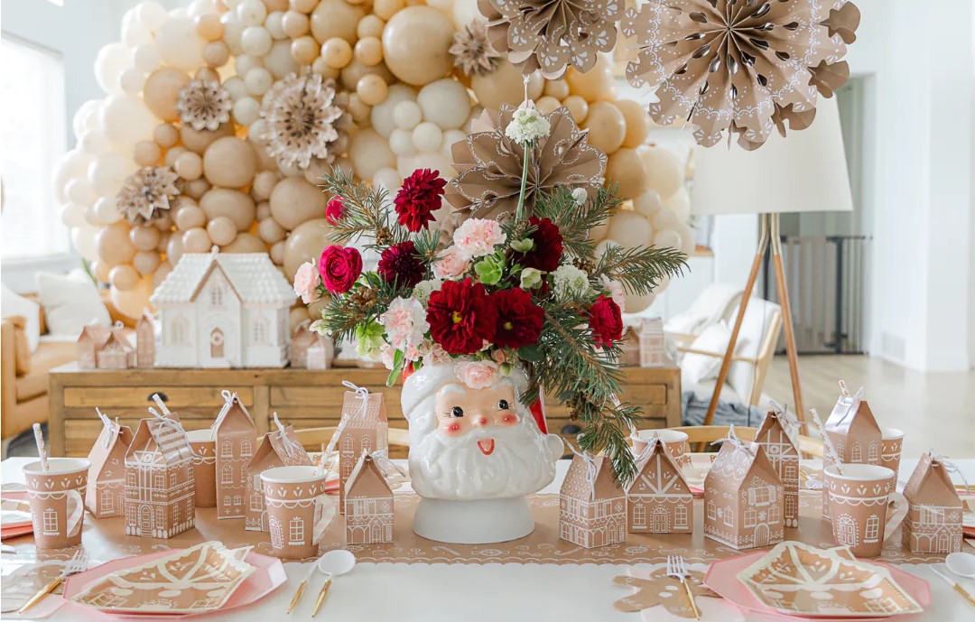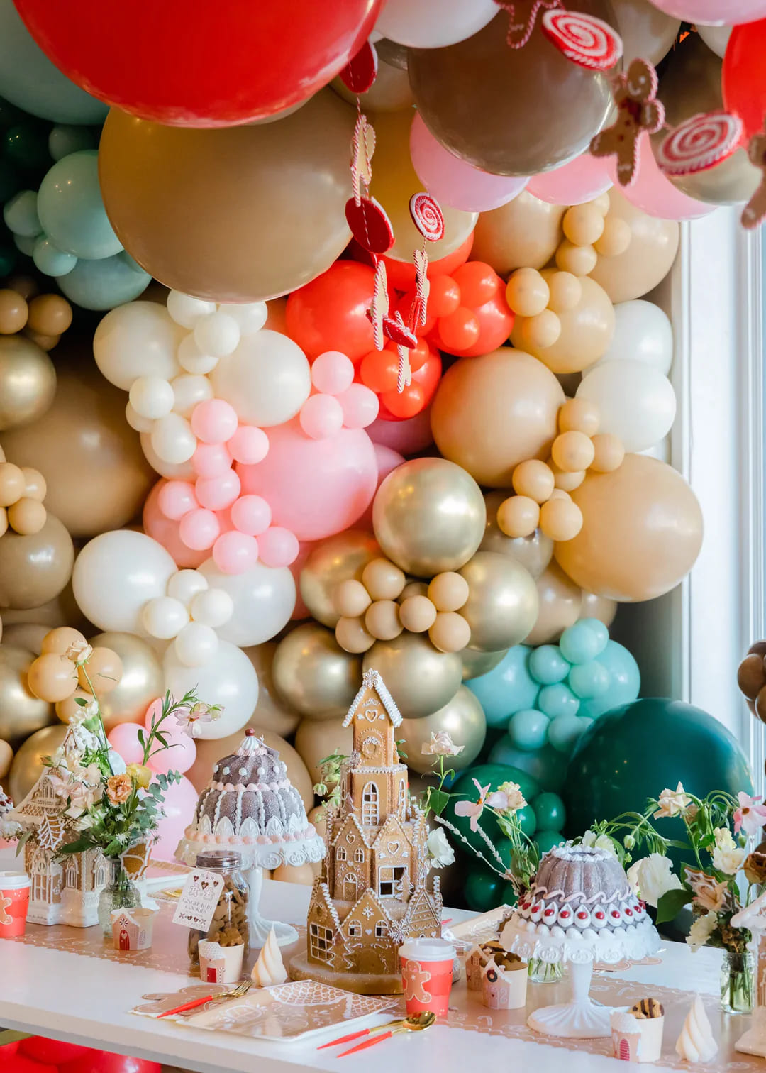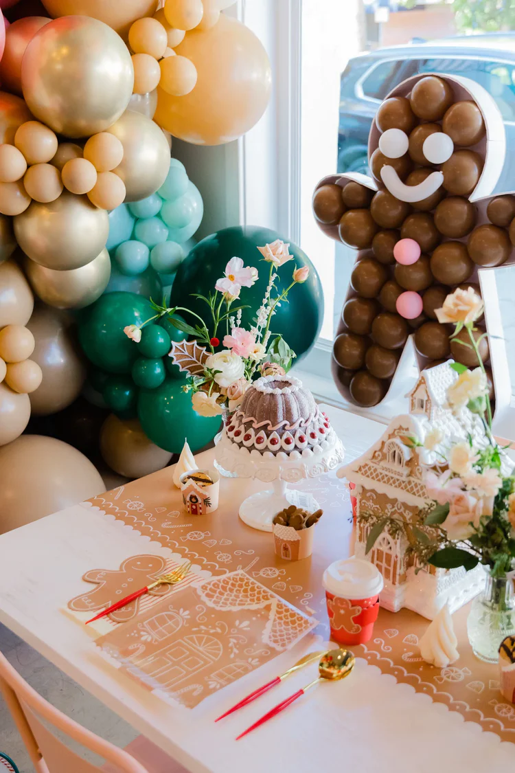 Скорее читайте статью, чтобы узнать, как устроить лучшую пряничную вечеринку к югу от Северного полюса! Мы за то, чтобы на любой вечеринке были активности! А если у вашего ребёнка день рождения в декабре, то мы очень рекомендуем оформлять его в новогоднем стиле — кто же против двух волшебных праздников в году? А в качестве развелечений можно устроить украшение пряников! Детки смогут сделать свой авторский пряник и угостить им родителей. На столе расставьте новогоднюю посуду — у нас в каталоге её очень много, на любой вкус! Добавьте к ней пастельные или золотые приборы, хлопушки и конфетти. Для украшения пространства выбери воздушные шары, а ещё гирлянды и вертушки. Шары можно просто расставить с утяжелителями в виде связок по всей комнате. Или заказать у нас роскошную гирлянду, которая сразу создаст торжественную атмосферу! Для украшения пряников вам понадобится сам пряник, без декора. Можно спечь самим, но проще заказать у кондитера. А для декора возьмите глазури разных цветов, для деток можно купить удобные карандашики с глазурью, сладкие бусинки и другие посыпки. Не забудьте про красивую ёлку! Если вы будете отмечать день рождения в студии, то поищите такую, где ёлочка уже есть. Нельзя же в новогоднюю атмосферу без неё! Угощения у кондитеров можно тоже заказать в пряничном стиле. Вы только посмотрите ан эти домики и особняки из имбирного текста! Настоящее украшение вашего праздничного стола.