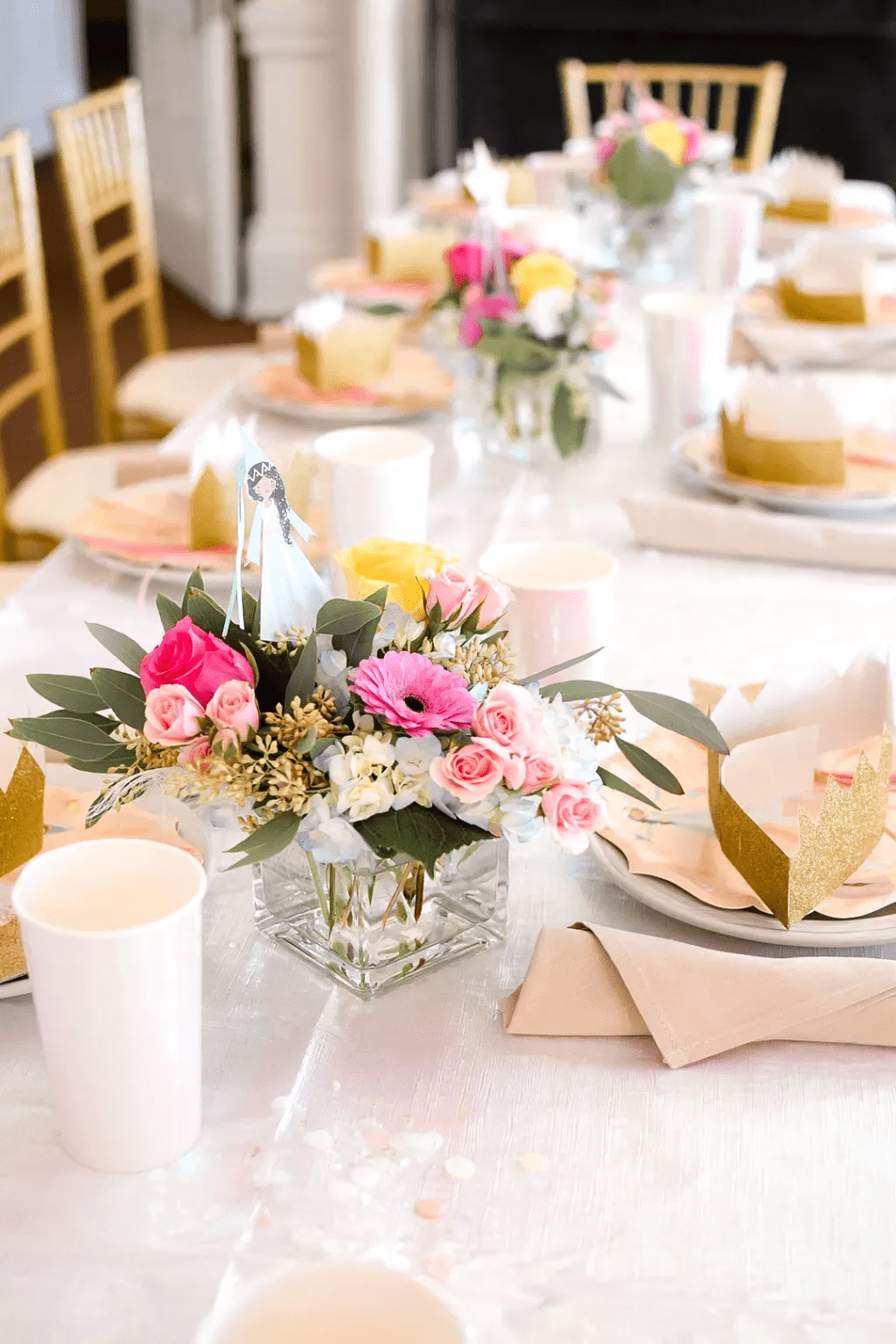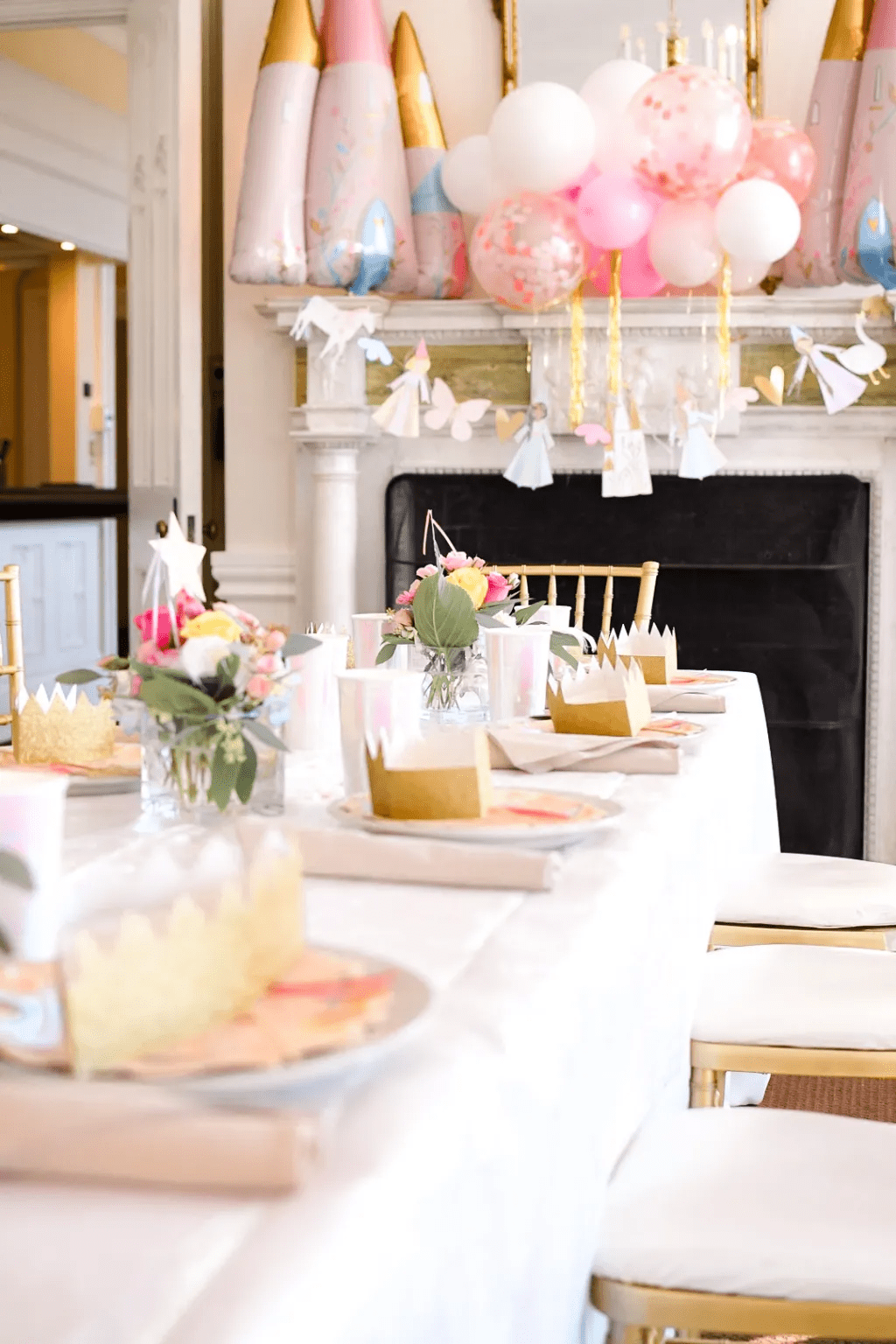 Сложно найти девочку, которая не обожает принцесс, замки, единорогов и волшебство! Специально для них у Мери Мери есть чудесная коллекция декора и посуды. Именно ее использовали для оформления этого дня рождения! Но самое главное, на этой вечеринке были две принцессы — Золушка и Белль. Аниматоры очень важны на детских праздниках, ведь малышам хочется не только вкусно покушать, но и повеселиться. В коллекции вы найдете чудесные тематические пакетики, в которые можно сложить подарки для гостей. Здесь для девочек положили красивые трубочки с принцессами, развивающие журналы и другие мелочи. Пространство помогут украсить чудесные бумажные гирлянды, шары в виде замков и блестящий дождик. А тортик и другие десерты можно декорировать с помощью свечей и топперов с принцессами. Например, тут топперы даже украсили букеты цветов! У каждой девочки на ее месте за столом лежали корона и волшебная палочка — чтобы они с легкостью могли перевоплотиться в сказочных принцесс. После чаепития принцессы пригласили девочек на уроки бальных танцев и королевских манер — детям очень понравилось! Источник: maytherebebubbly.com