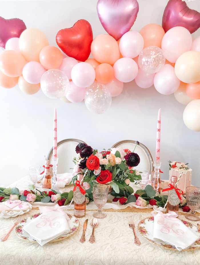 Наш сегодняшний праздник подойдет как для детей, так и для взрослых! Посмотрите на это королевское оформление: золотые приборы, фарфоровый сервиз, изысканная скатерть и вышитые салфетки. Стол украсила импровизированная гирлянда из свежих роз, которая протянулась через его центр. К празднику приготовили нежные угощения: тортик с розами и малиной, печенье-сердечки и розовый лимонад. Пространство украсили гирляндой из воздушных шаров — основной декор был на столе, поэтому все вокруг было декорировано по минимуму. Источник: karaspartyideas.com