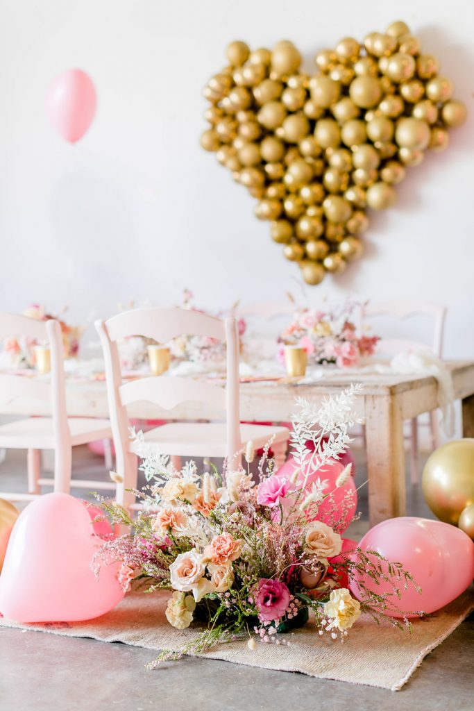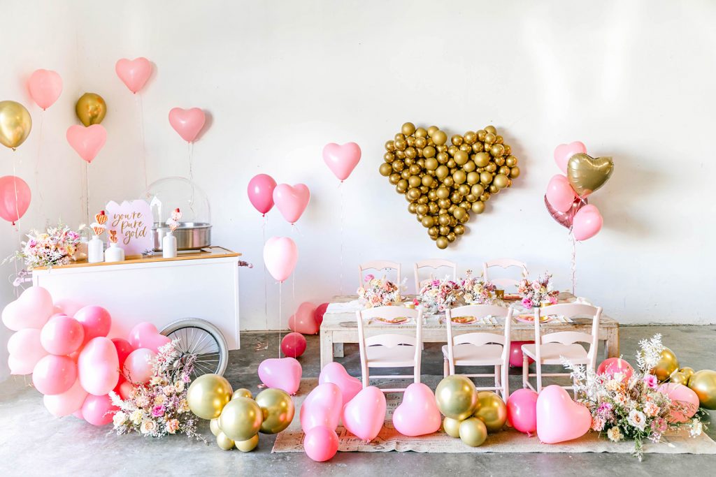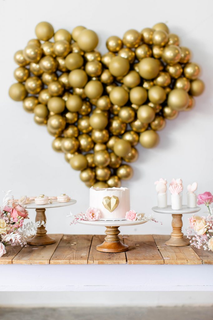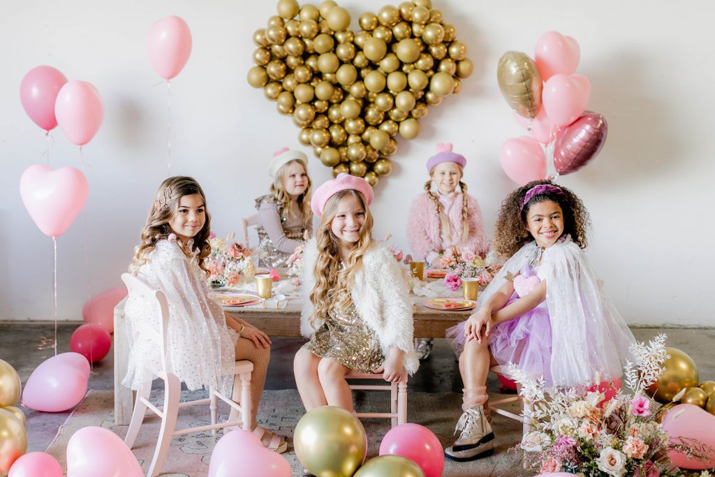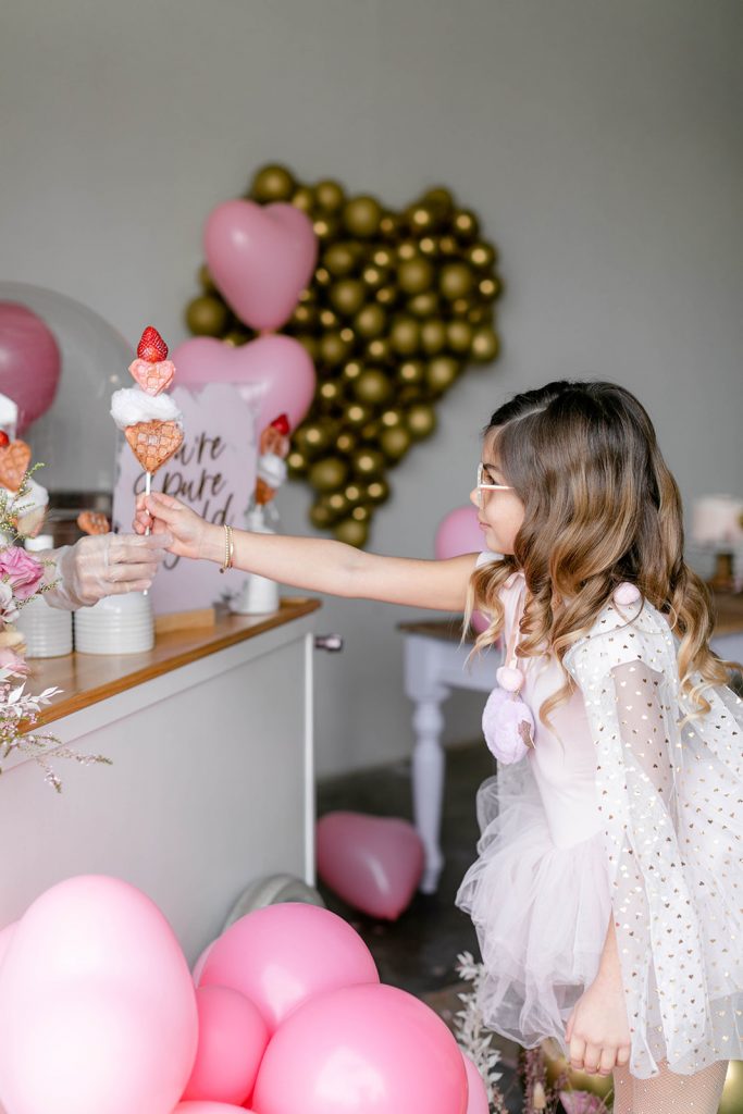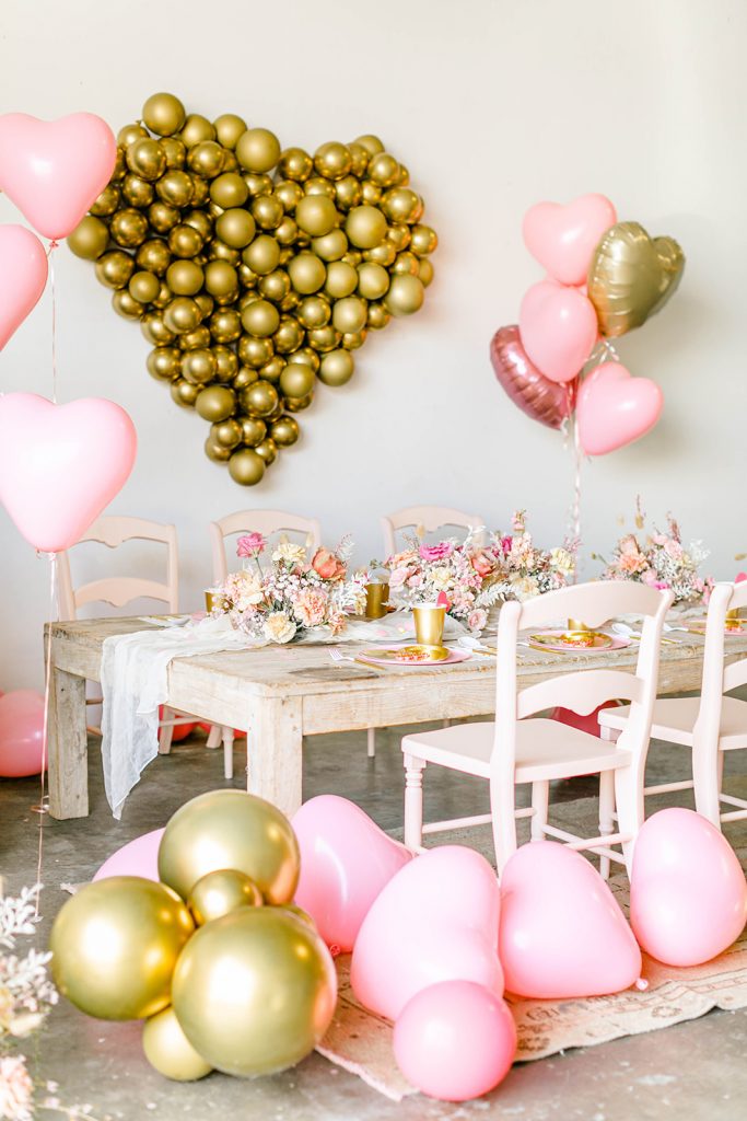 Детка, у тебя золотое сердце! Именно эта фраза вдохновила декораторов на создание нежной вечеринки в розово-золотых тонах. Валентинов день обычно оформляют либо в ярких красных тонах, либо в сдержанных припыленных. У нас именно второй вариант! Приглашения для гостей напечатали на белых и розовых открыточках в пастельных тонах. Особенно здорово они смотрятся в этом антураже: струящаяся ткань, конфетти-сердечки и другие украшения. И главная фишка праздника — огромное золотое сердце из воздушных шаров! Такое очень легко сделать самостоятельно, главное, надуть шары одинакового размера и надежно закрепить их на стене. Стол украсило множество радужных пастельных букетов, конфетти и тематическая посуда. Декораторы использовали сочетание круглых розовых тарелочек и золотых тарелок в форме сердец. У каждой гостьи лежала именная табличка из акрила! Посмотрите, как нежно смотрятся эти букеты на фоне деревянного стола и полоски ткани, тянущейся через весь стол. Украсить пространство - тоже важная часть декора. Шариками можно украсить все вокруг, привязав их к грузикам, а также разбросать их вокруг стола и других праздничных зон. Для сладостей и напитков были подготовлены отдельные уголки. Например, на этой милой тележке подавали молоко с вафлями, украшенными клубникой и сладкой ватой. Посмотрите, на эти потрясающие наряды девочек, они не уступают голливудским дивам! А еще на одном столе стояли кейкстенды с макаронс, тортом и муссом, украшенным безе и зефиром. Сладости прекрасно вписались в окружающий декор — такие нежные, с золотыми акцентами и украшающие любую фотографию! Как всегда, ссылочки на посуду и декор, которые подойдут к этому празднику мы оставляем внизу! Источник: beijosevents.com