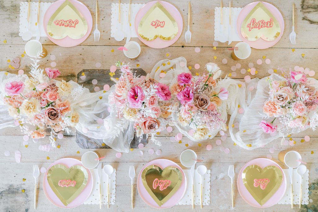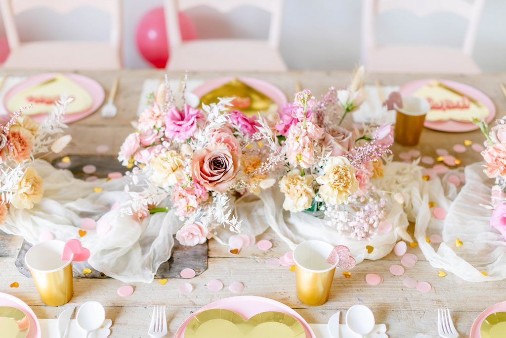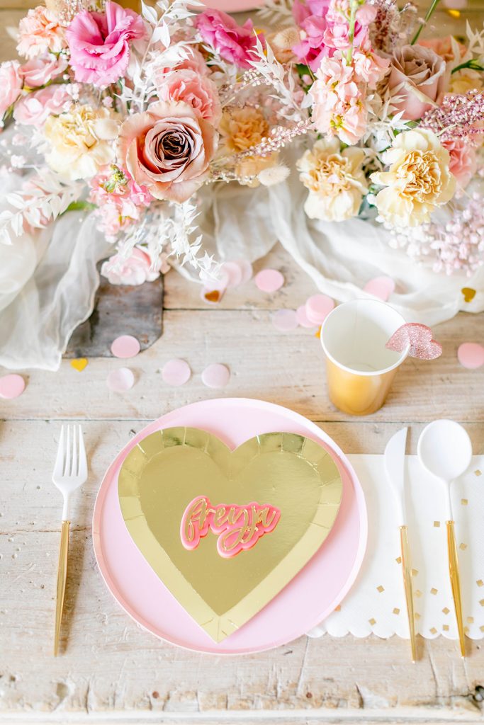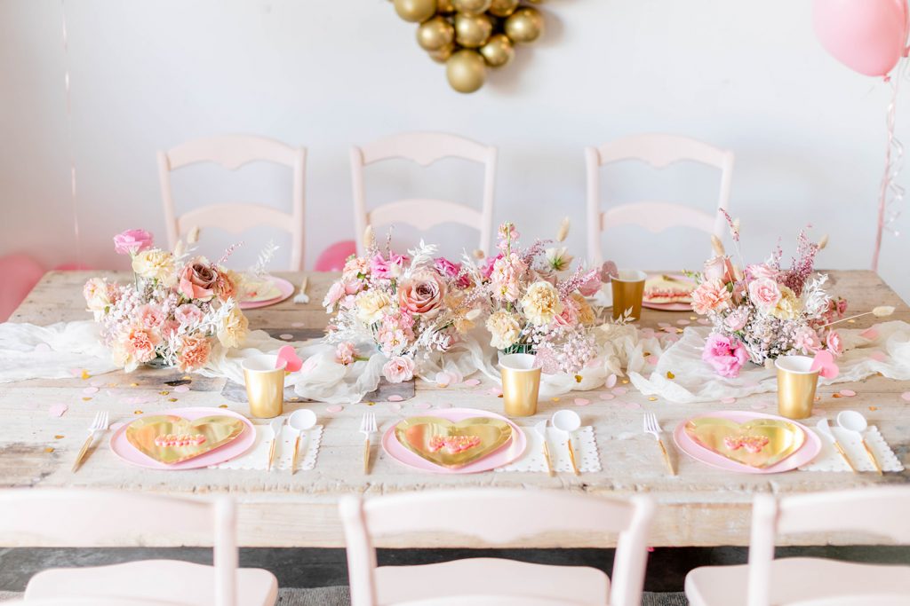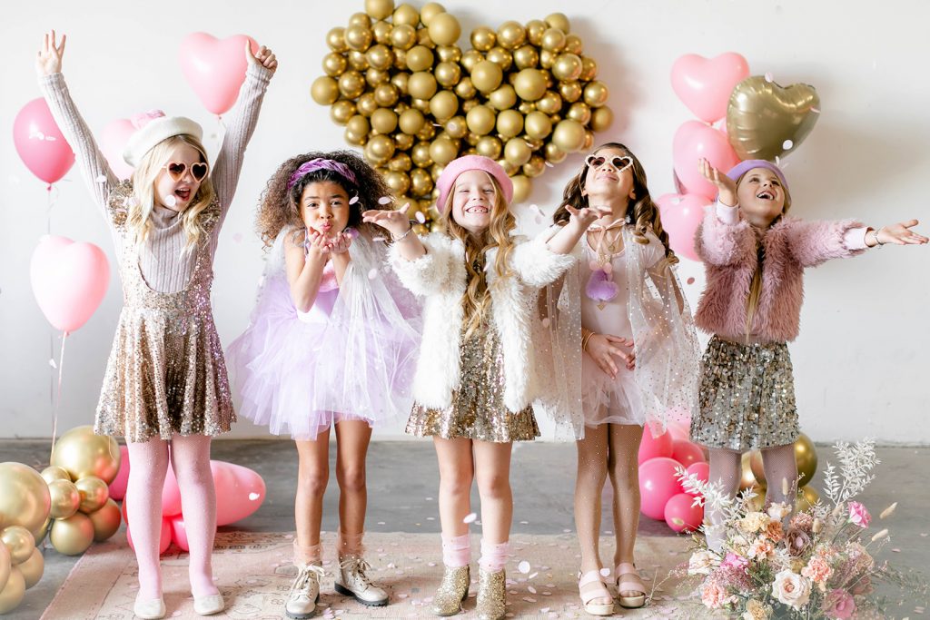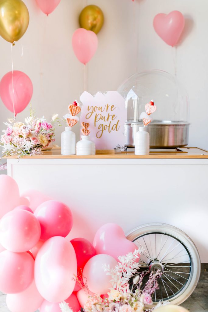 Детка, у тебя золотое сердце! Именно эта фраза вдохновила декораторов на создание нежной вечеринки в розово-золотых тонах. Валентинов день обычно оформляют либо в ярких красных тонах, либо в сдержанных припыленных. У нас именно второй вариант! Приглашения для гостей напечатали на белых и розовых открыточках в пастельных тонах. Особенно здорово они смотрятся в этом антураже: струящаяся ткань, конфетти-сердечки и другие украшения. И главная фишка праздника — огромное золотое сердце из воздушных шаров! Такое очень легко сделать самостоятельно, главное, надуть шары одинакового размера и надежно закрепить их на стене. Стол украсило множество радужных пастельных букетов, конфетти и тематическая посуда. Декораторы использовали сочетание круглых розовых тарелочек и золотых тарелок в форме сердец. У каждой гостьи лежала именная табличка из акрила! Посмотрите, как нежно смотрятся эти букеты на фоне деревянного стола и полоски ткани, тянущейся через весь стол. Украсить пространство - тоже важная часть декора. Шариками можно украсить все вокруг, привязав их к грузикам, а также разбросать их вокруг стола и других праздничных зон. Для сладостей и напитков были подготовлены отдельные уголки. Например, на этой милой тележке подавали молоко с вафлями, украшенными клубникой и сладкой ватой. Посмотрите, на эти потрясающие наряды девочек, они не уступают голливудским дивам! А еще на одном столе стояли кейкстенды с макаронс, тортом и муссом, украшенным безе и зефиром. Сладости прекрасно вписались в окружающий декор — такие нежные, с золотыми акцентами и украшающие любую фотографию! Как всегда, ссылочки на посуду и декор, которые подойдут к этому празднику мы оставляем внизу! Источник: beijosevents.com