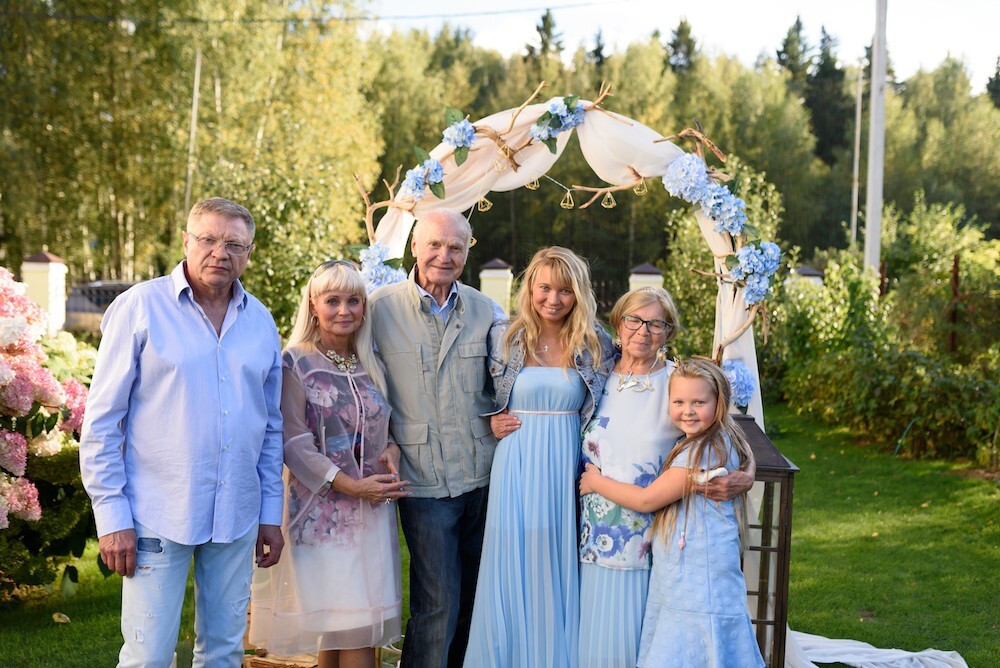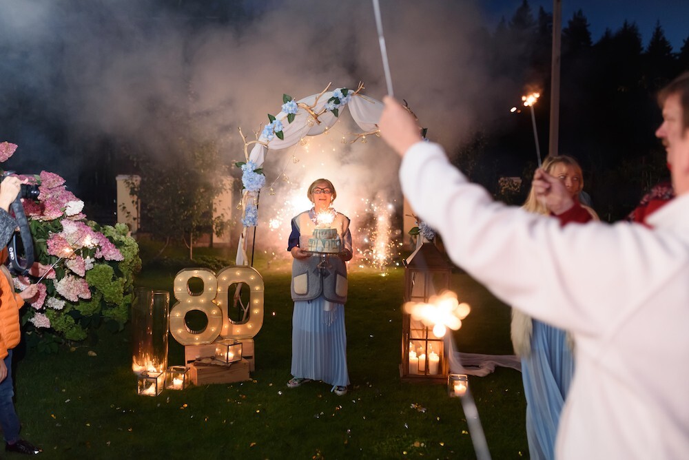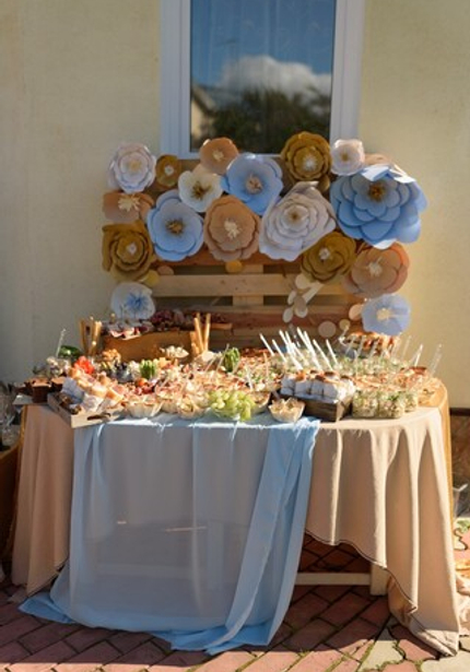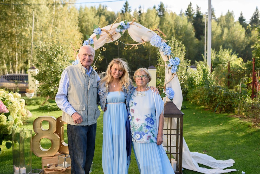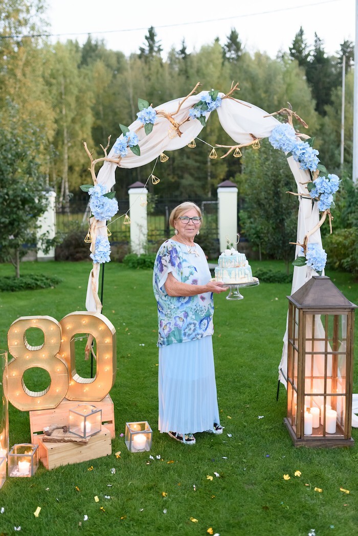 Совершенно особенный праздник, который наш декоратор Женя устраивала для своей бабушки! Нежный бежево-голубой декор, обилие зелени и множество вкусных угощений для именинницы и гостей. Вышло очень лаконично и при этом стильно. Пышные украшения в виде цветов над столом с закусками и изысканный обеденный стол — здесь все было крайне гармонично. Женя придумала и создала изящную арку, которая выполняла роль фотозоны.