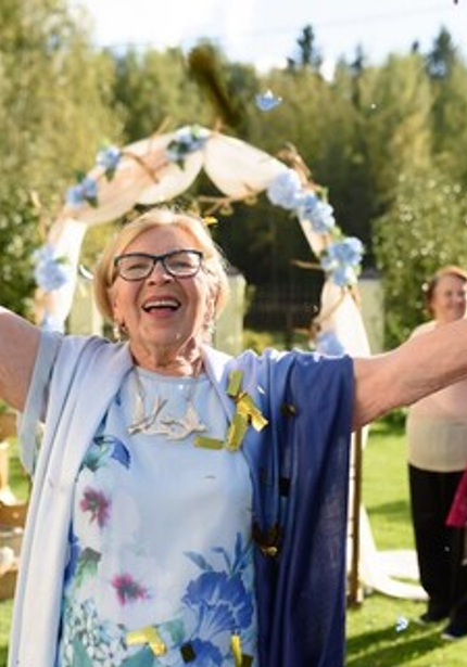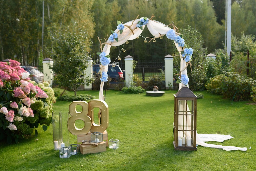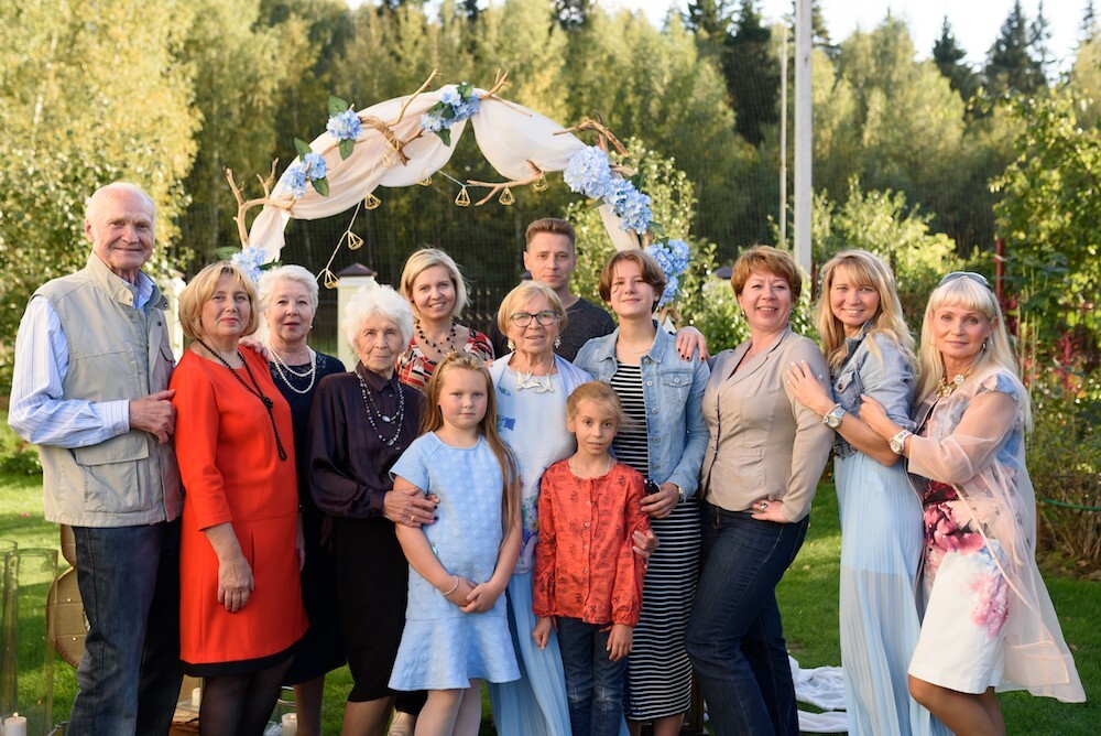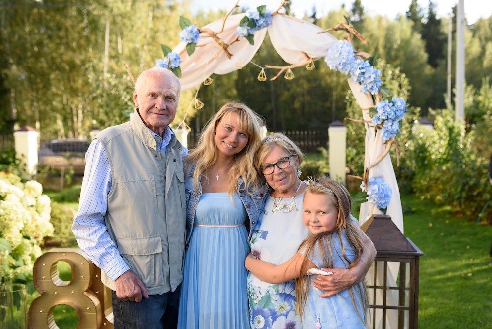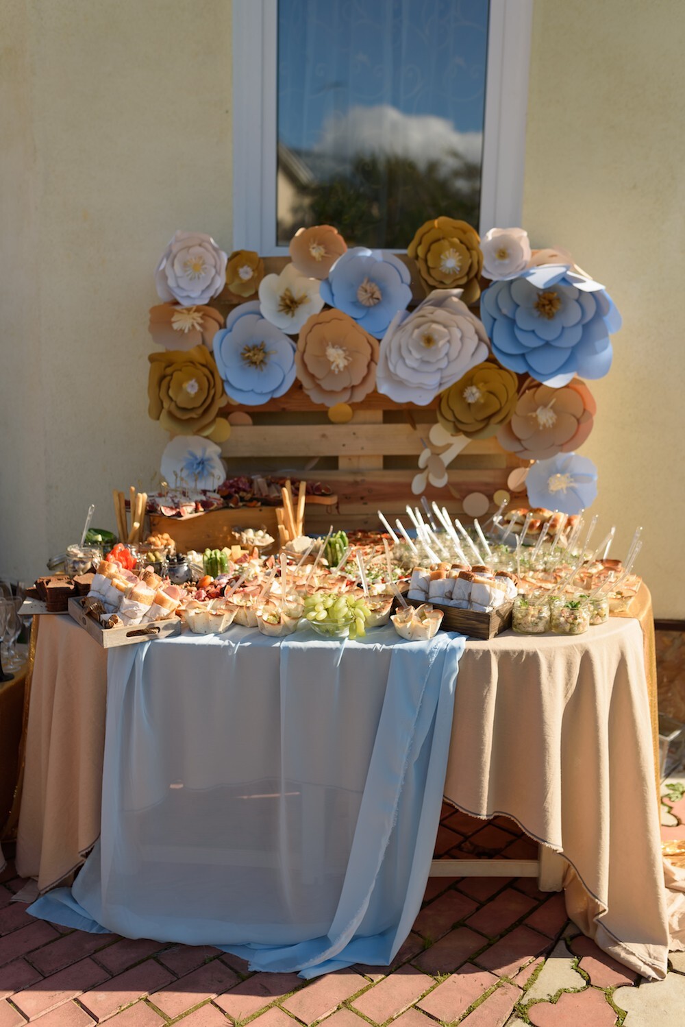 Совершенно особенный праздник, который наш декоратор Женя устраивала для своей бабушки! Нежный бежево-голубой декор, обилие зелени и множество вкусных угощений для именинницы и гостей. Вышло очень лаконично и при этом стильно. Пышные украшения в виде цветов над столом с закусками и изысканный обеденный стол — здесь все было крайне гармонично. Женя придумала и создала изящную арку, которая выполняла роль фотозоны.