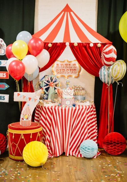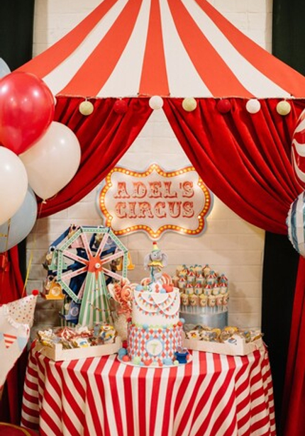 Детям очень нравится цирковая тематика: яркие шатры, воздушные шары, попкорн в бумажных стаканчиках и веселые развлечения!