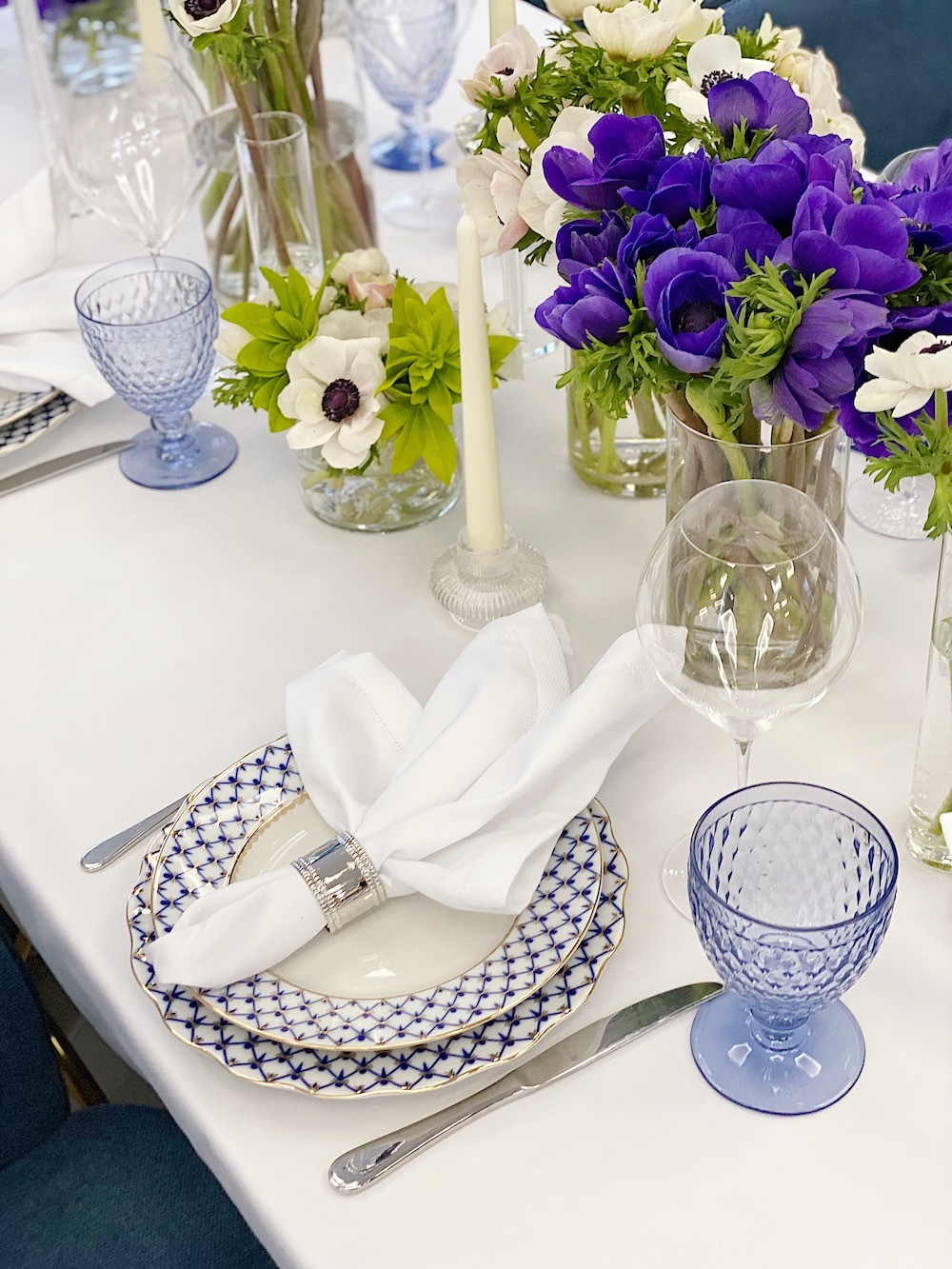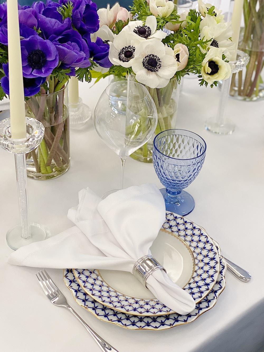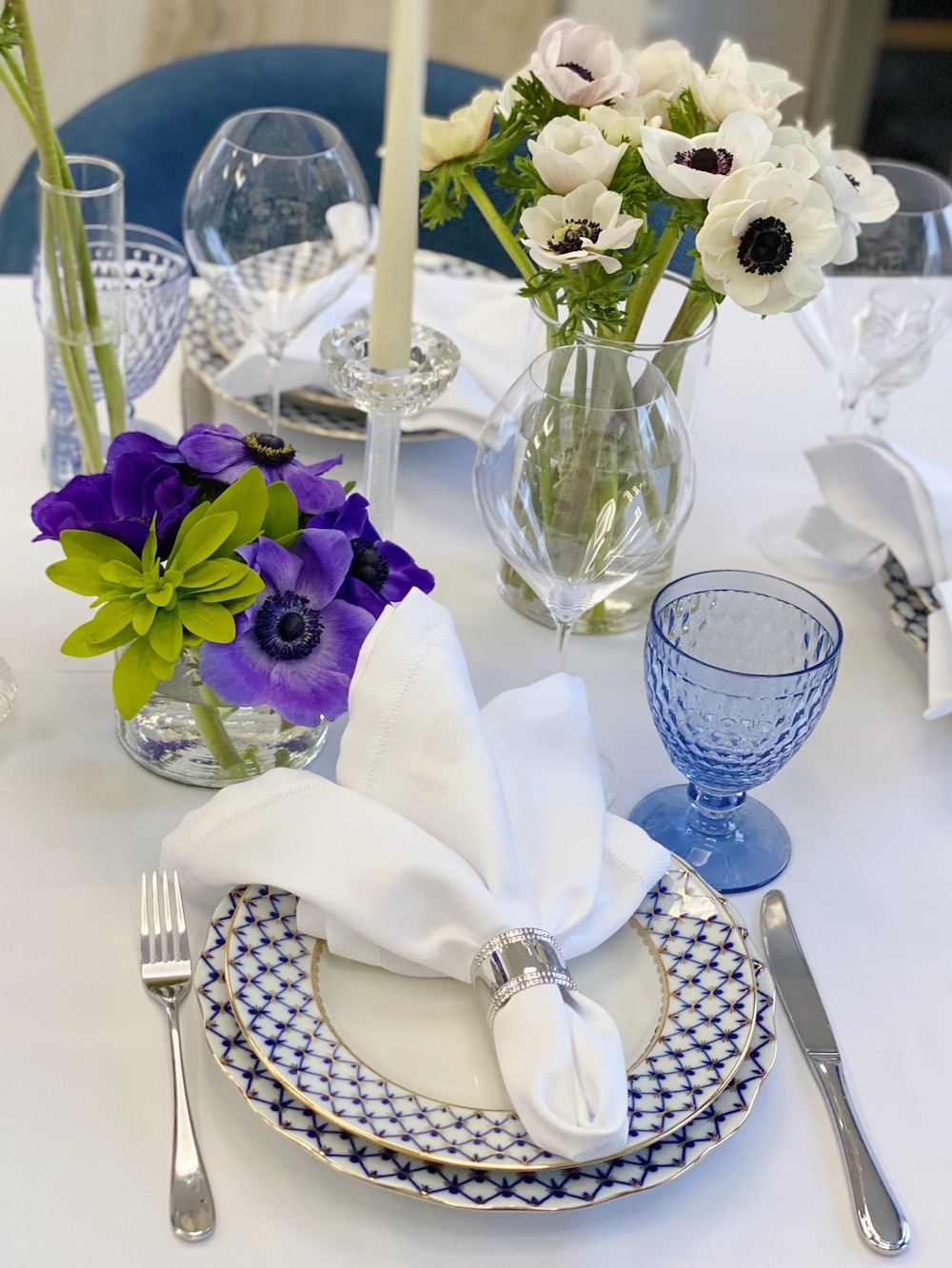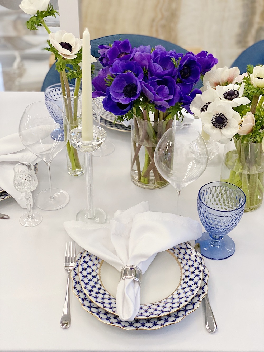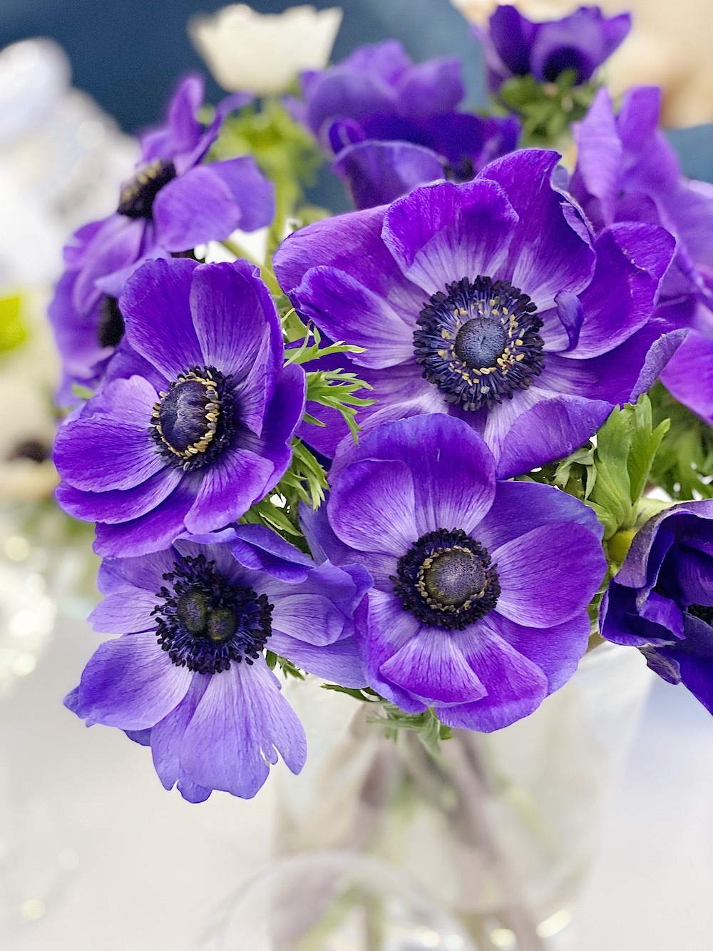 Тематикой праздника может стать что угодно! Даже любимые цветы — смотрите, как мы оформили пространство, отталкиваясь от анемонов: бело-голубая посуда, белоснежная скатерть и немного воздушных шаров. Стильный и очень сдержанный взрослый праздник, который порадует ваш взгляд, а аромат цветов станет завершающим штрихом!
