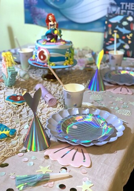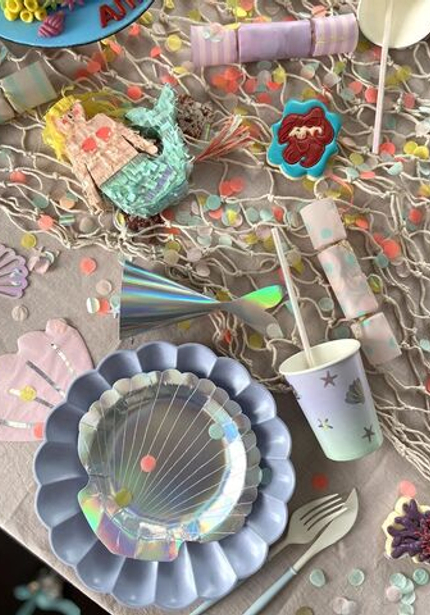 Вечеринка с Ариэль — да о таком мечтает почти каждая девочка! Но недостаточно просто украсить все изображениями любимой героини, нужно и стол накрыть подобающе. В этом нам помогла коллекция Мери Мери: перламутровые сверающие тарелки-ракушки, блестящие трубочки, морские колпачки, ракушки-салфетки и многое другое. Что думаете, классно получилось?
