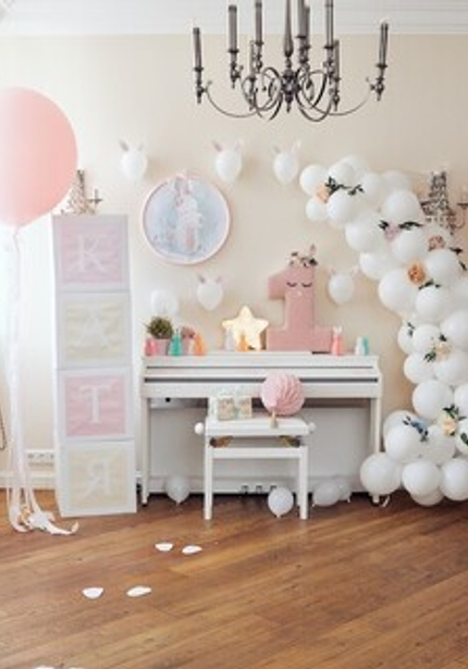 Первый день рождения — это всегда самые нежные и очаровательные тематики! Для этой именинницы оформили праздник с белыми зайчатами, идеальная тематика для малышей, она подойдет и мальчикам, и девочкам, в зависимости от цветовой гаммы. Обязательный атрибут любого праздника — воздушные шары. Достаточно добавить одну пышную гирлянду, и все пространство преобразится! И, конечно, не забудьте про тематическую циферку, она не только украсит праздник, но и сразу напомнит вам, какую дату вы отмечали, когда вы будете просматривать фото.