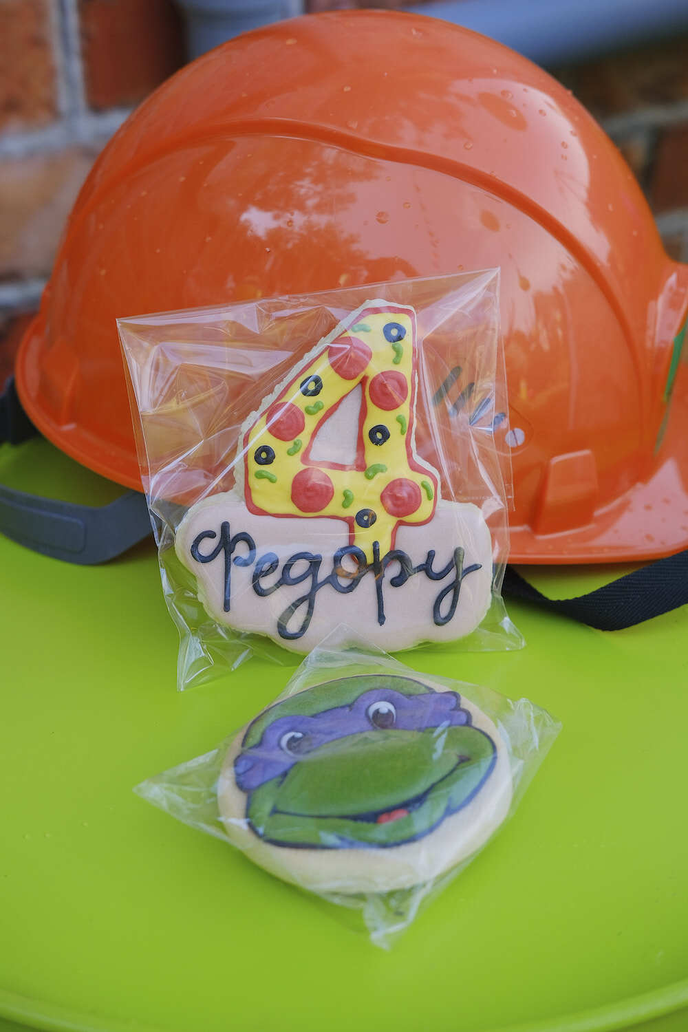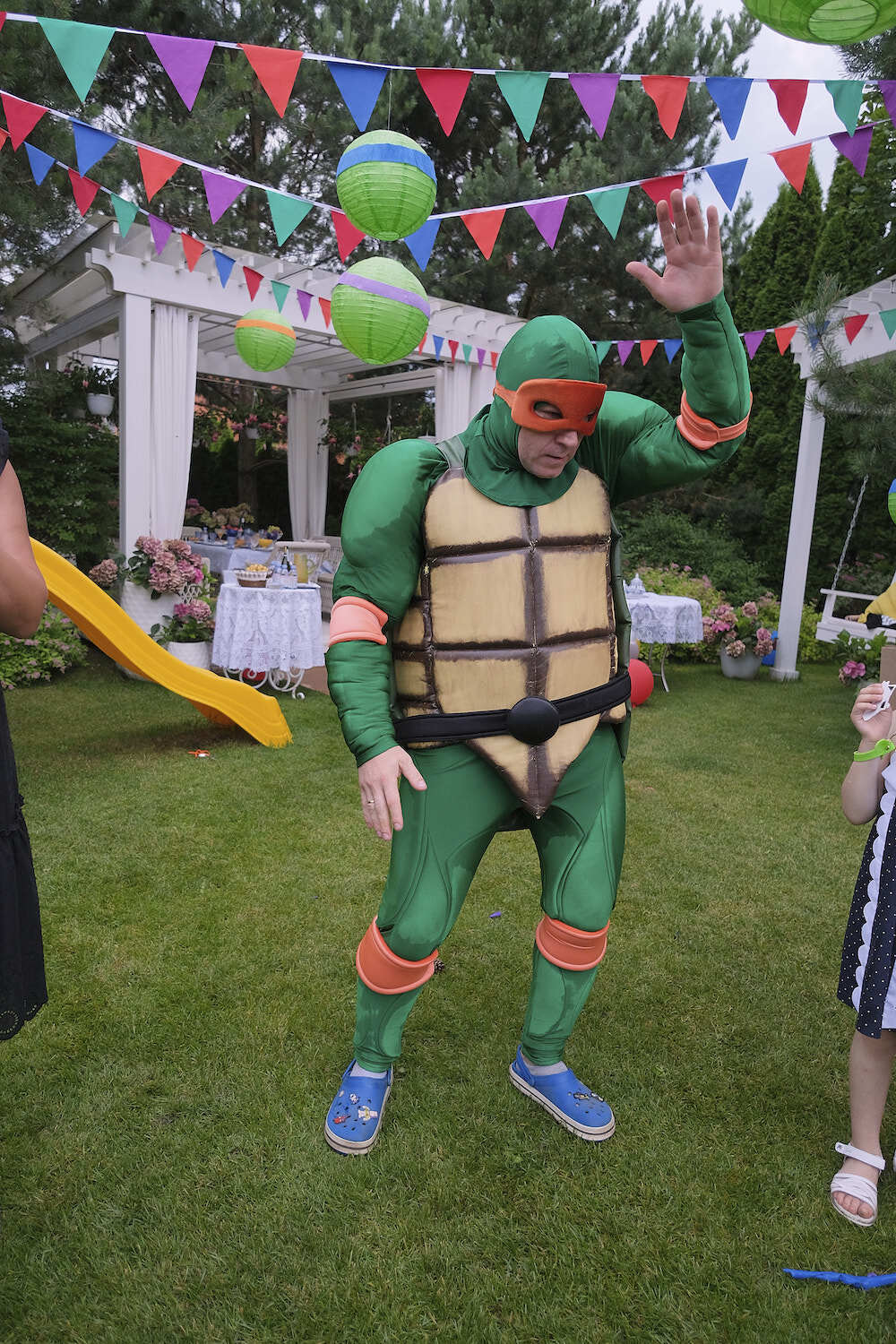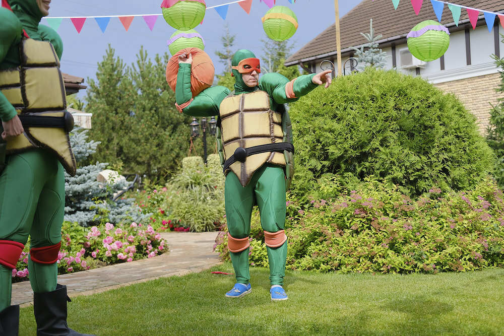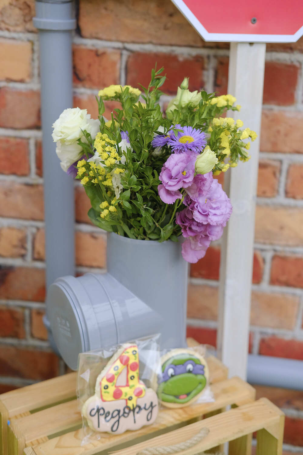 Каких героев бы ни обожал именинник, мы всегда сможем сделать крутой тематический праздник! Феде очень нравятся Черепашки-ниндзя, так что мы с вдохновением взялись за эту задачу. Приготовили тематические угощения — шикарный тортик и печенье, подобрали анимационную программу и пригласили героев мультика, а ещё всё вокруг украсили в стиле мультика.