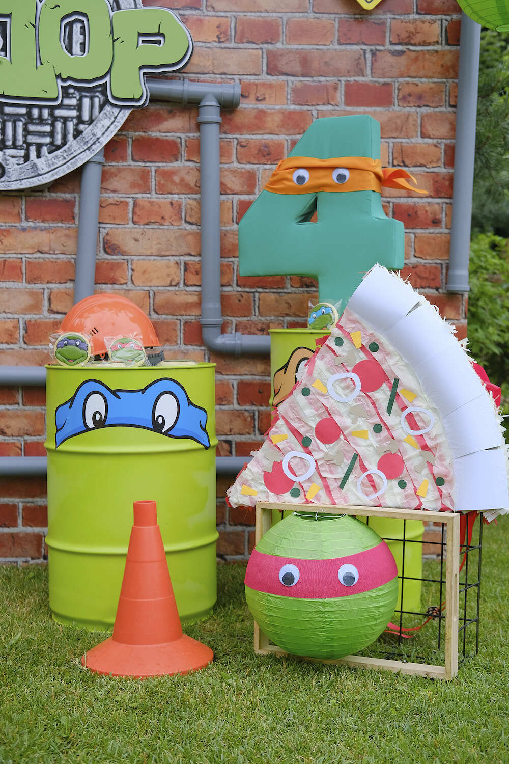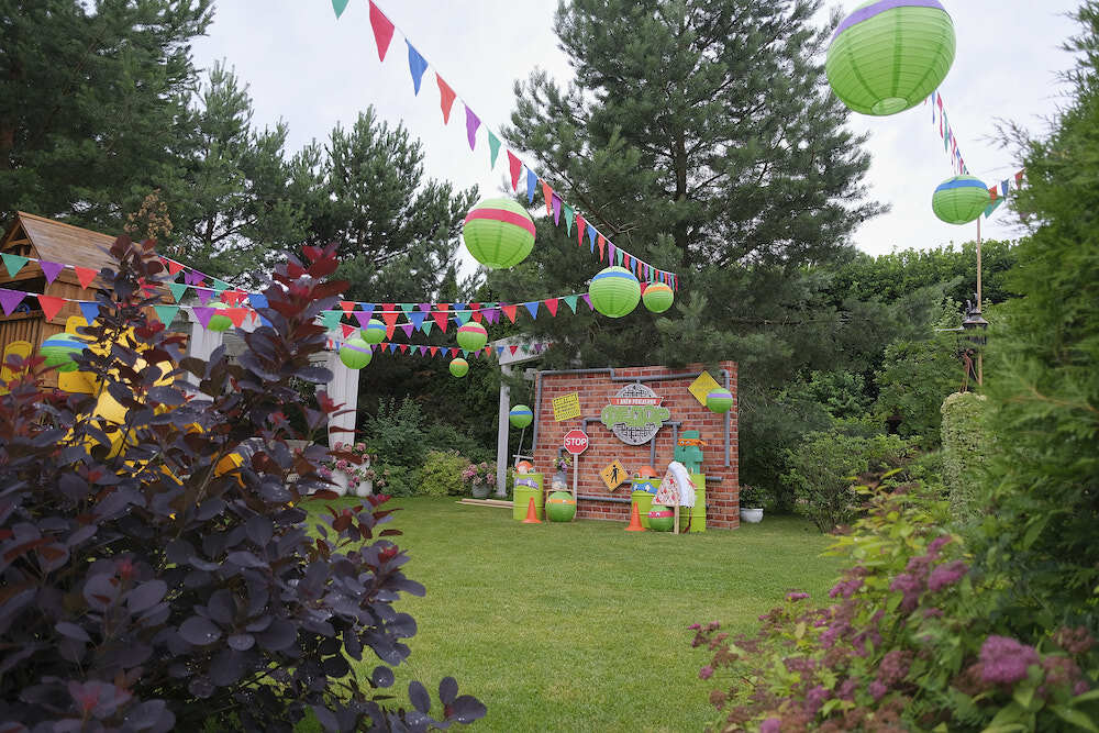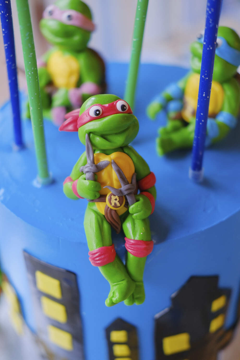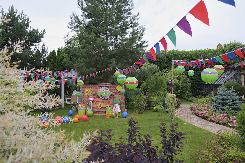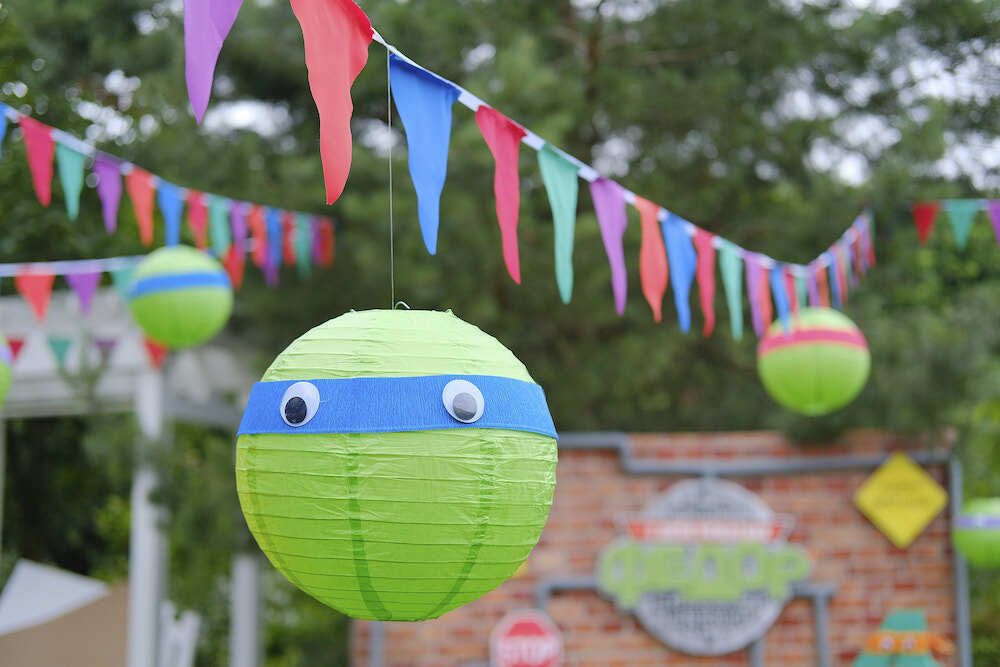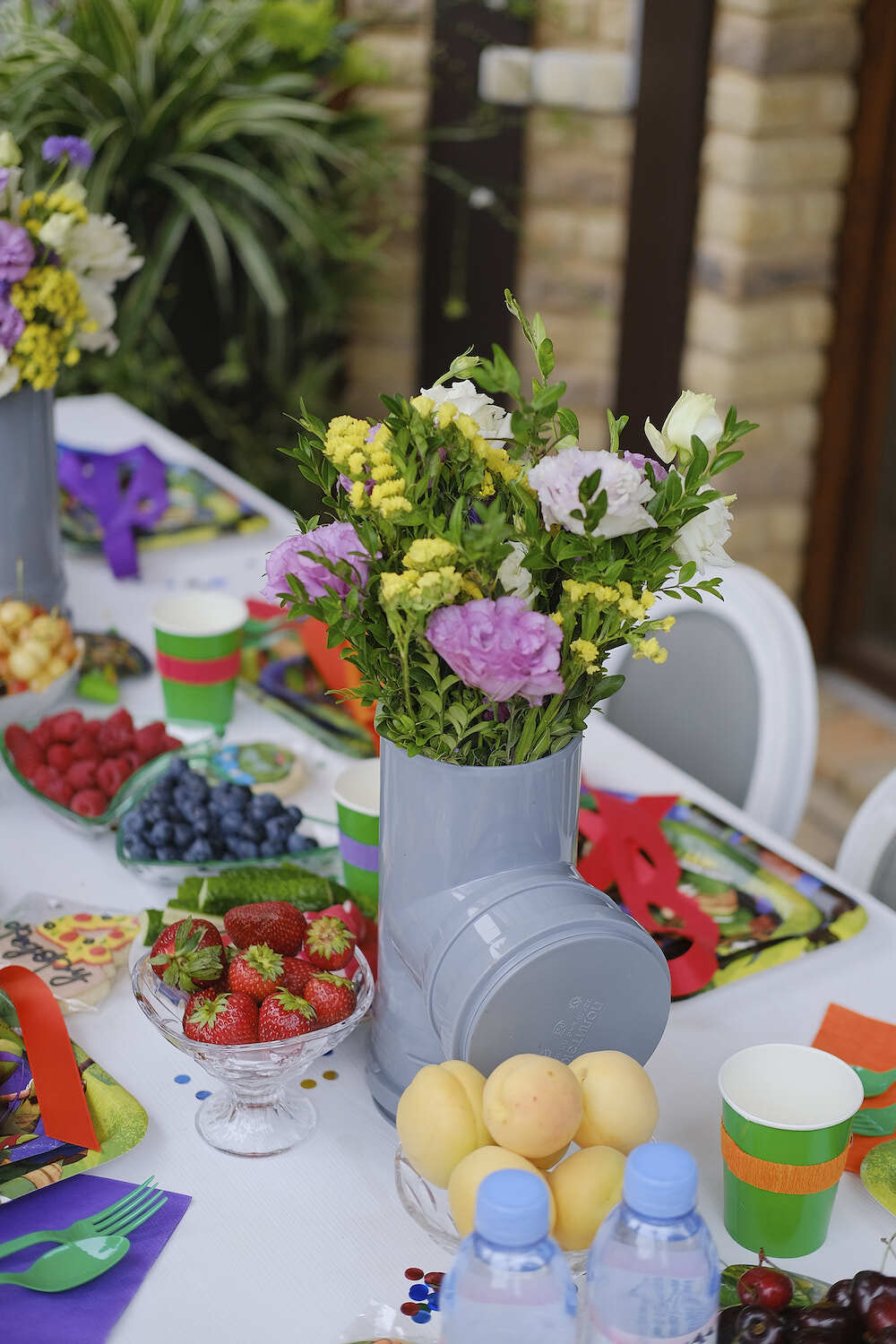 Каких героев бы ни обожал именинник, мы всегда сможем сделать крутой тематический праздник! Феде очень нравятся Черепашки-ниндзя, так что мы с вдохновением взялись за эту задачу. Приготовили тематические угощения — шикарный тортик и печенье, подобрали анимационную программу и пригласили героев мультика, а ещё всё вокруг украсили в стиле мультика.