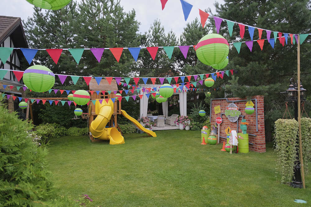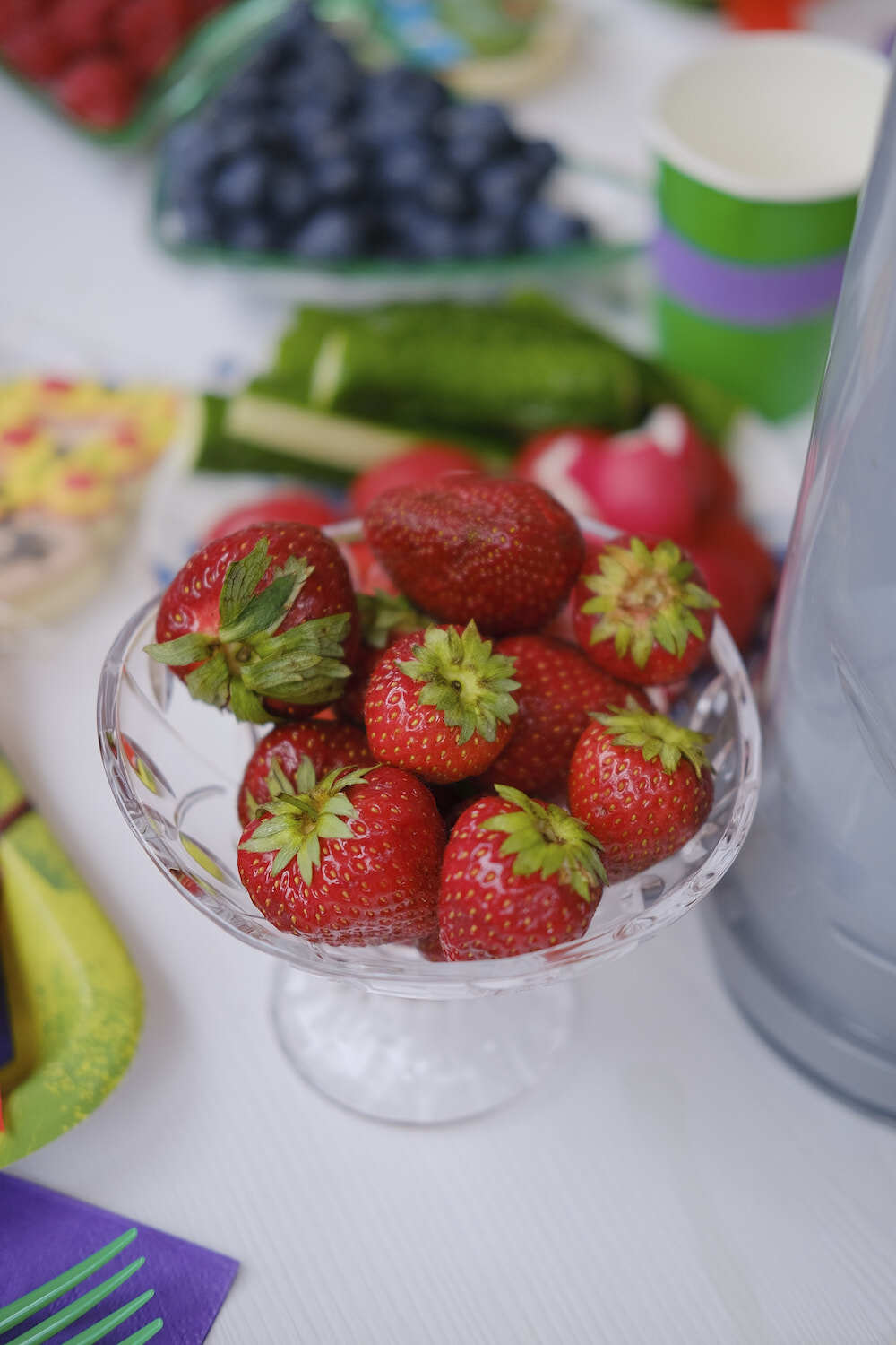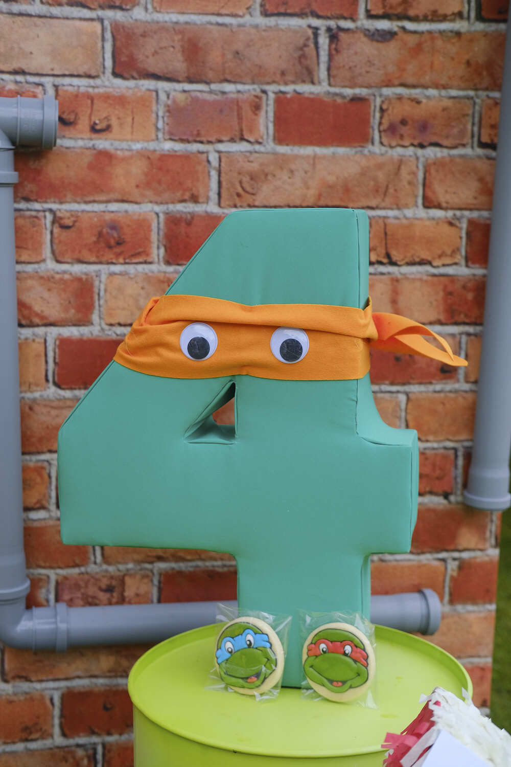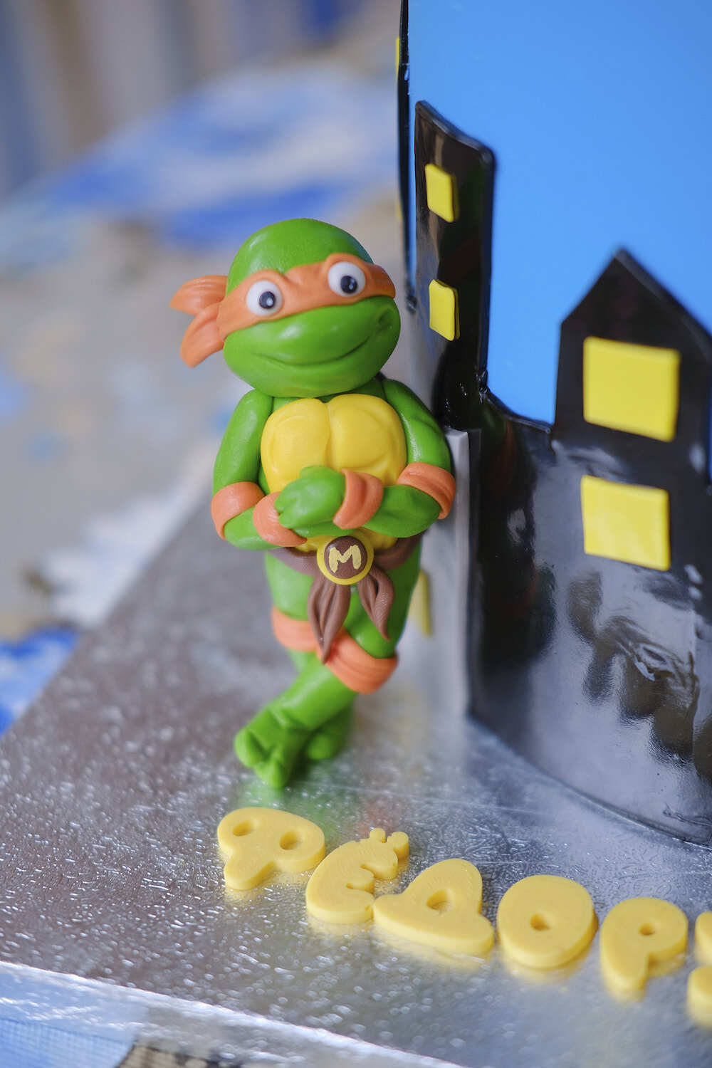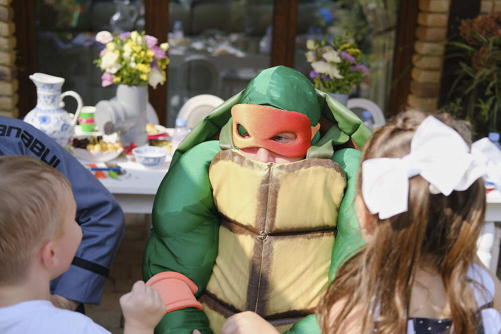 Каких героев бы ни обожал именинник, мы всегда сможем сделать крутой тематический праздник! Феде очень нравятся Черепашки-ниндзя, так что мы с вдохновением взялись за эту задачу. Приготовили тематические угощения — шикарный тортик и печенье, подобрали анимационную программу и пригласили героев мультика, а ещё всё вокруг украсили в стиле мультика.