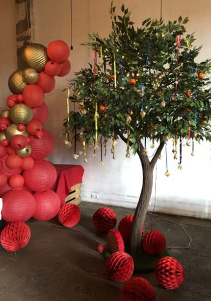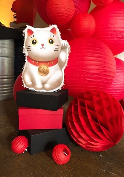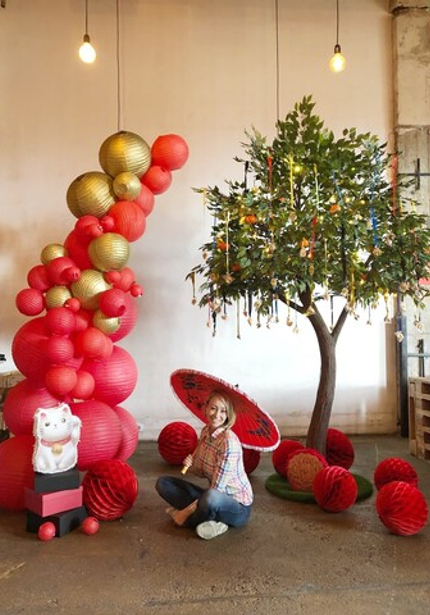 Как вам гирлянда из китайских фонариков вместо воздушных шаров? Мы добавили к зоне тематические пиньяты, зонтики и украсили деево печеньем с предсказаниями!