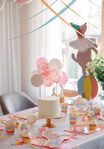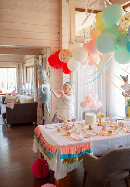 Нежный праздник, организованный мамой! Дарья, с помощью нашей коллекции декора, оформила невероятной красоты вечеринку у себя дома. Здесь были воздушные шары, гирлянды и море конфетти среди цирковых украшений! Особую атмосферу создавали фольгированные лошадки, гарцующие по воздуху.
