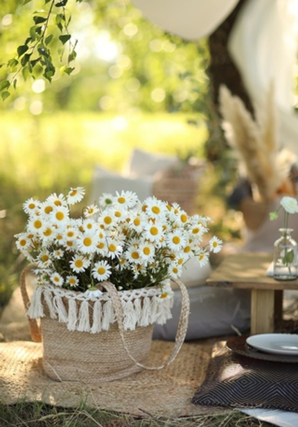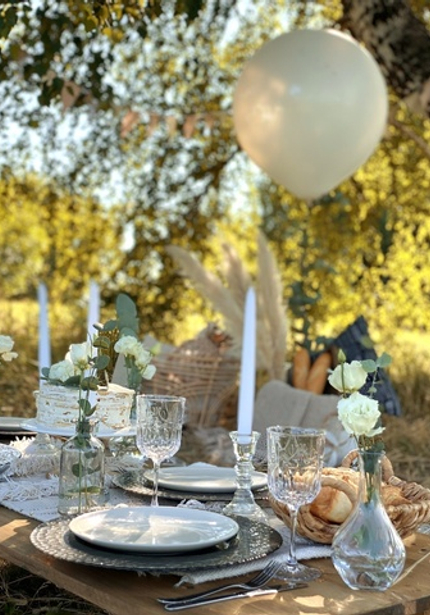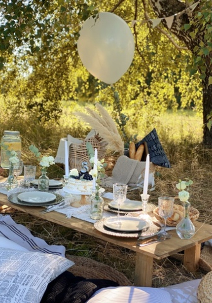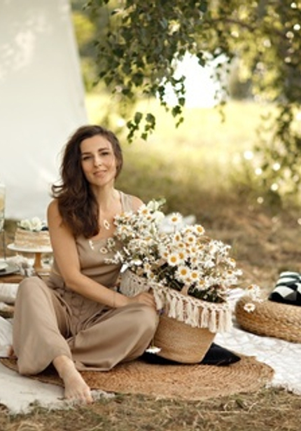 Мы офорляем не только дни рождения, но и фотодни! Этот чудесный пикник с ромашками Женя создала для фотографа Даши Дзюбы. На травке она расстелила пледы, разложила подушечки и сервировала низкий столик. Тут были и напитки, и угощения — ведь фото не должны выглядеть постановочными!