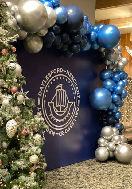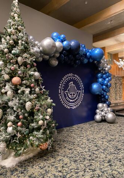 Еще одно корпоративное мероприятие, которое мы организовывали — на этот раз Новый год для компании Daylesford Merchant. Мы подготовили декор в фирменном синем цвете: композиции на стол, рассадку, баннер и шарики. Гармонично и со вкусом — именно такие праздники мы и стараемся делать для наших взрослых и серьезных клиентов.