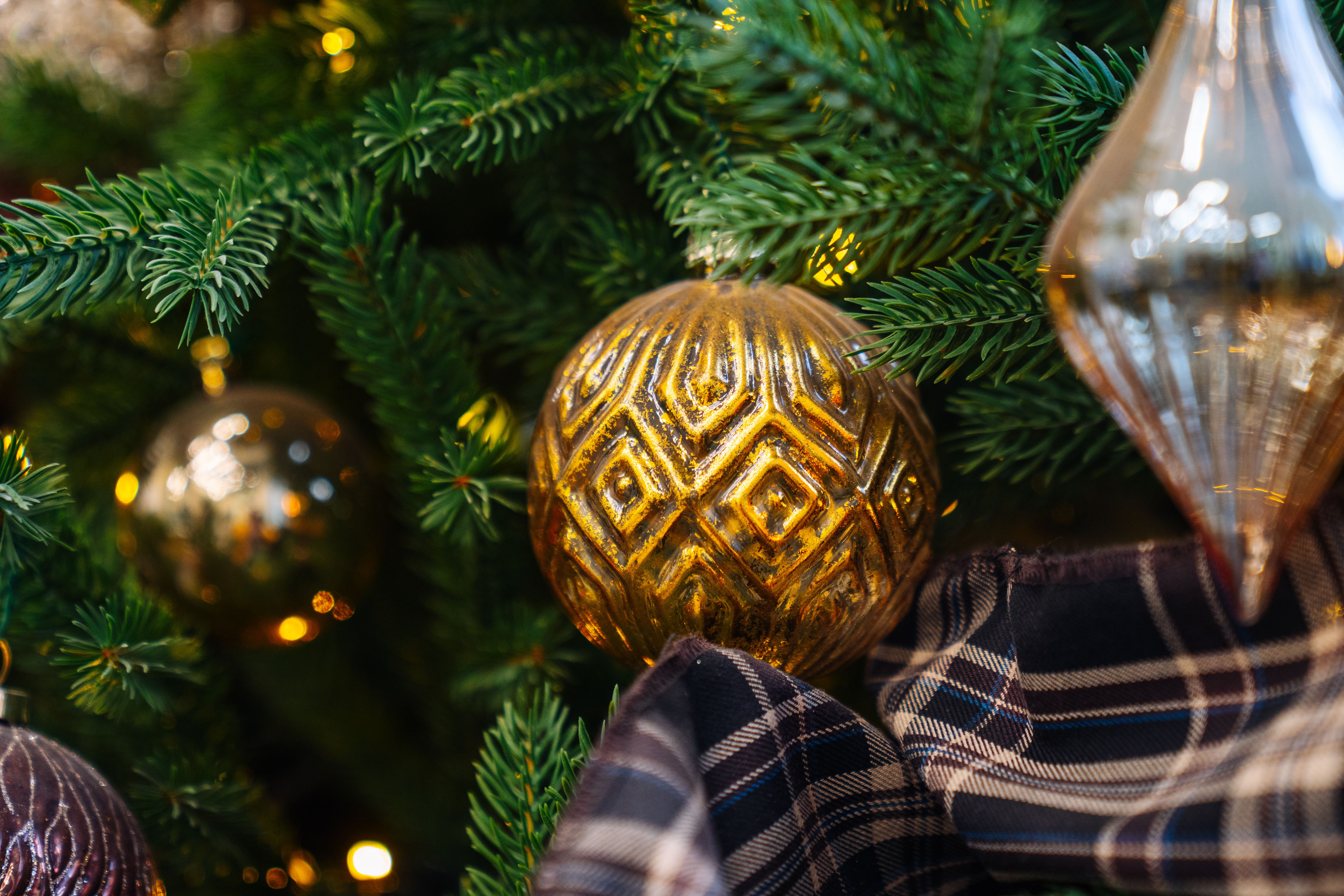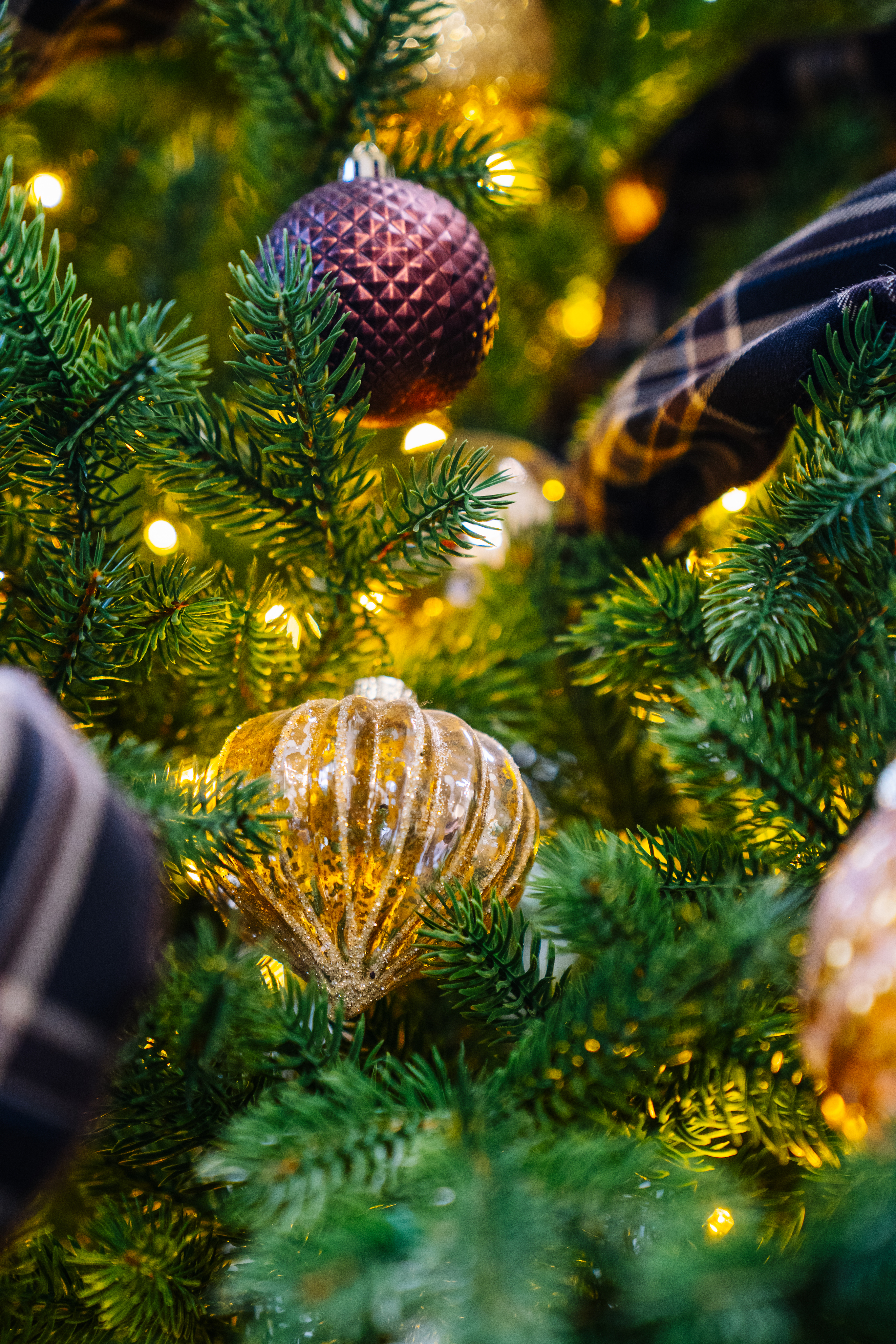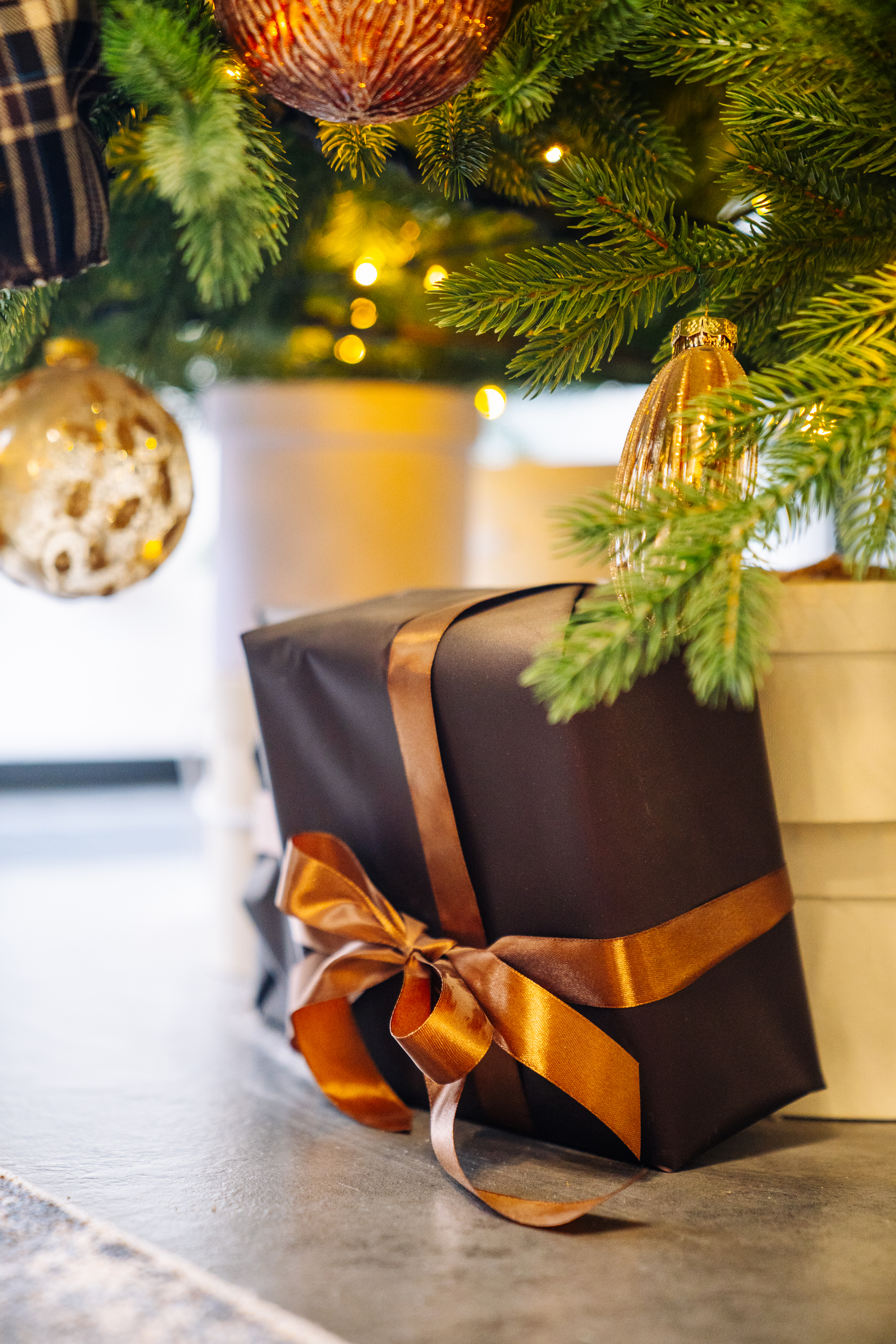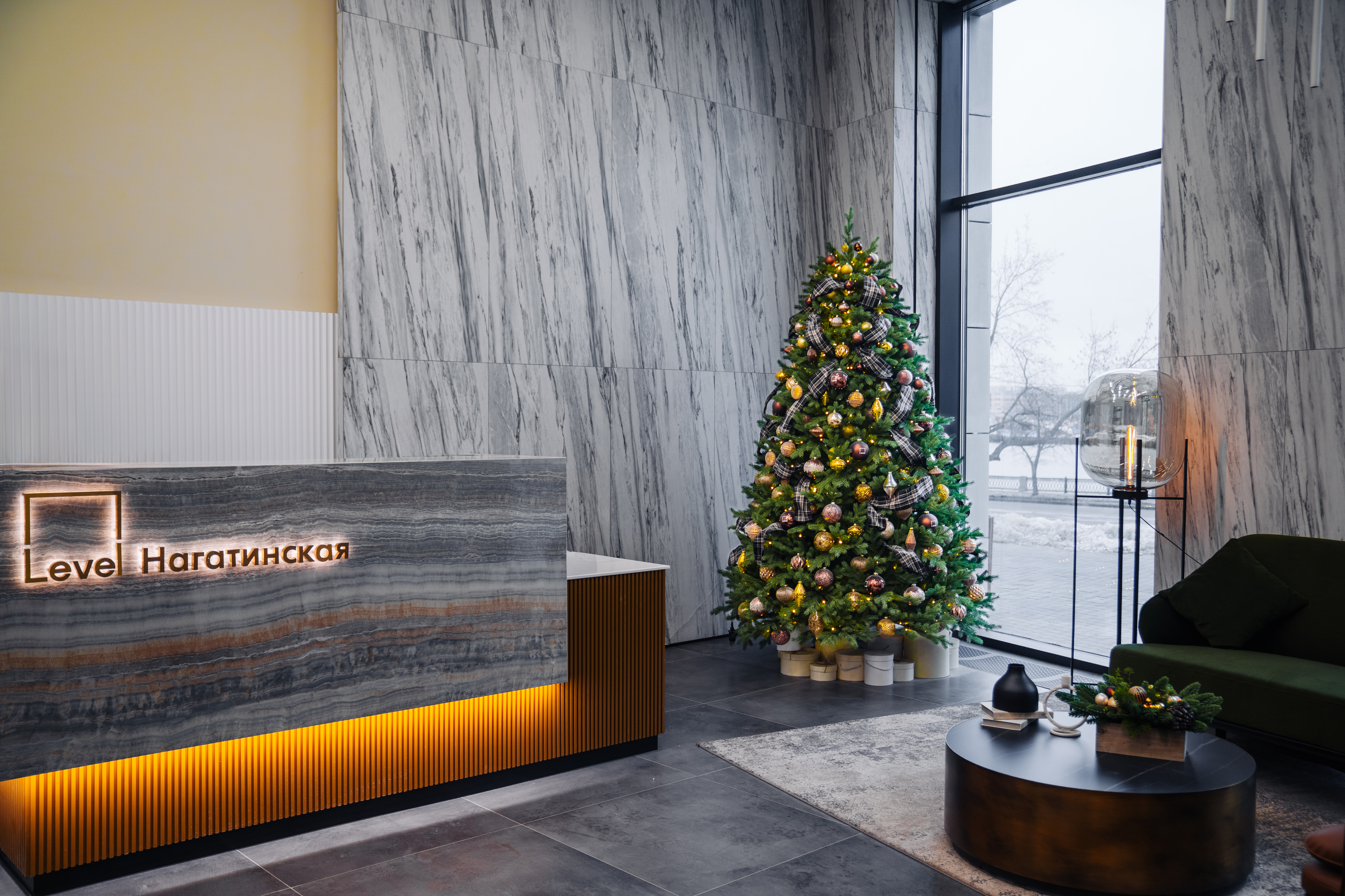 Эта ель — воплощение волшебства и элегантности. Её густая зелёная хвоя из литого материала оживает под сиянием встроенной гирлянды, а украшения в белых и глубоких красных оттенках наполняют интерьер теплом, уютом и атмосферой настоящего торжества. Под елью расположены декоративные подарки, завершающие образ и превращающие её в главный символ праздника.
