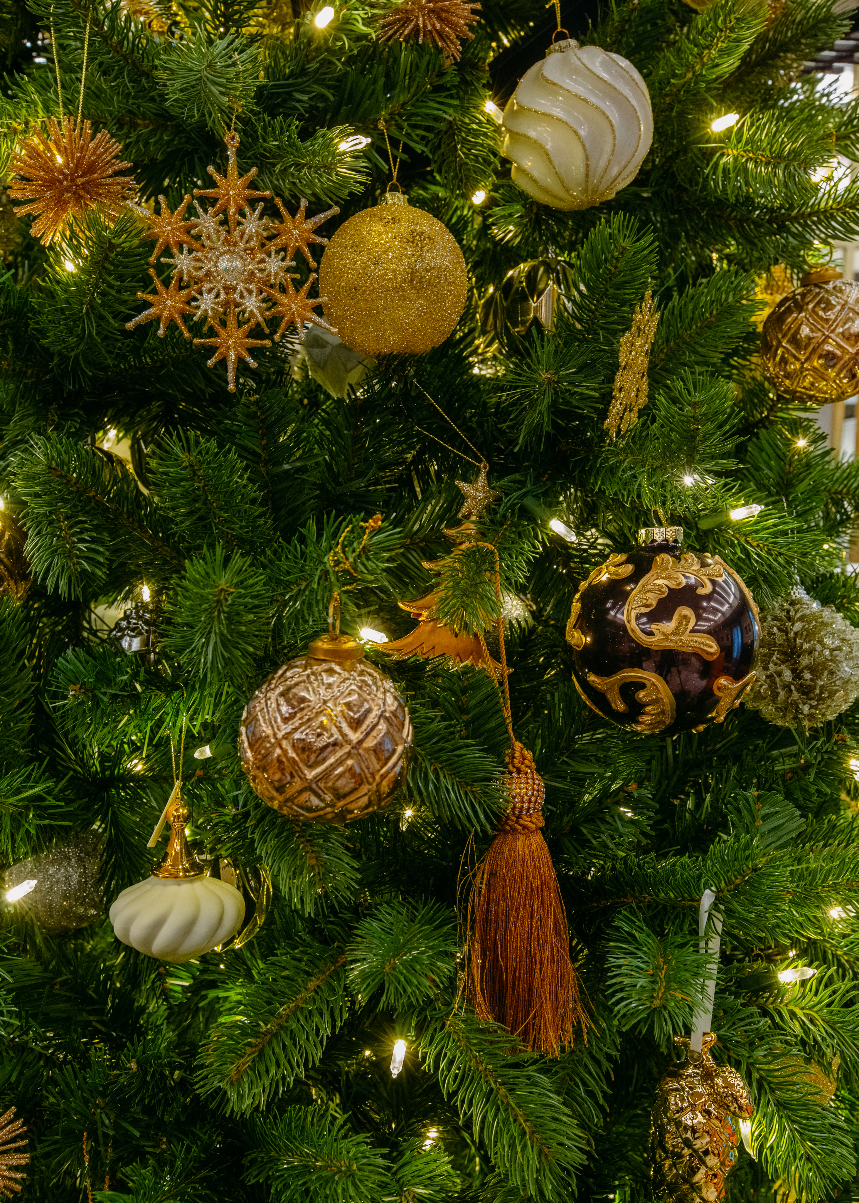 ✔ Комплект игрушек разных диаметров: 50% пластик, 50% стекло