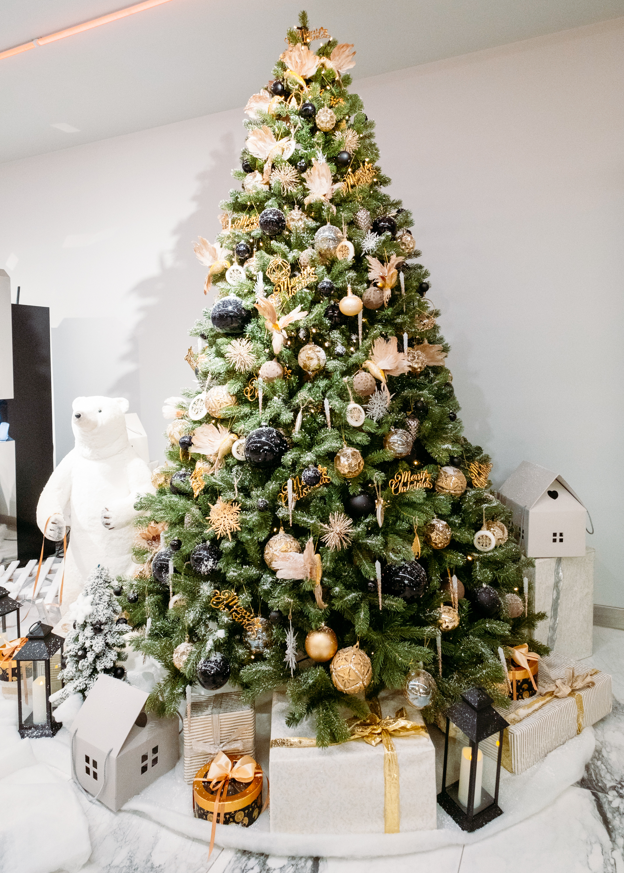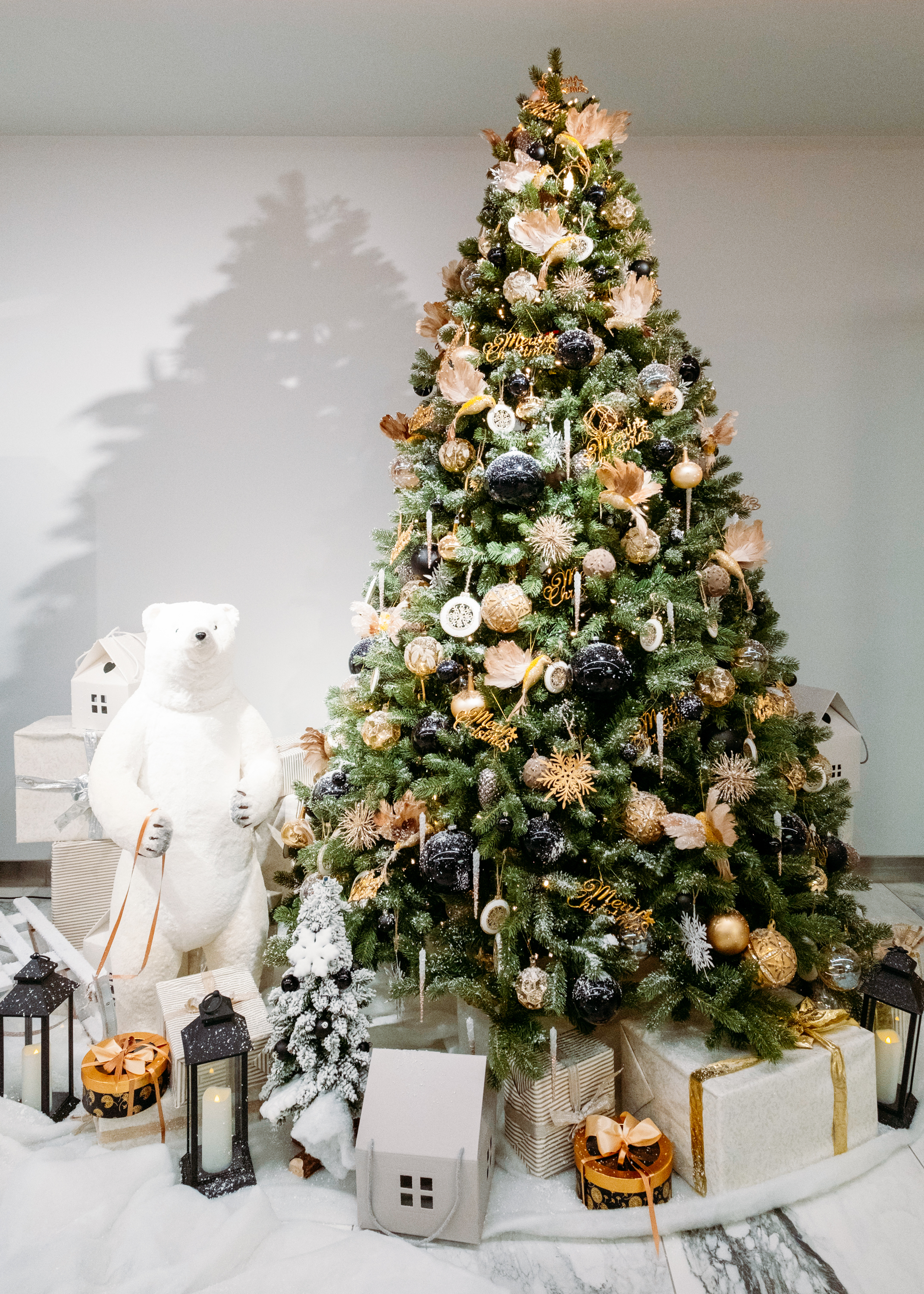 Эта ель — воплощение зимней сказки и настоящего волшебства. Литая хвоя с мягким свечением встроенной гирлянды создаёт ощущение живого дерева, а богатая коллекция игрушек разных фактур добавляет глубины и праздничного блеска. Под ёлкой вас встретят декоративные подарки, завершая образ торжества.