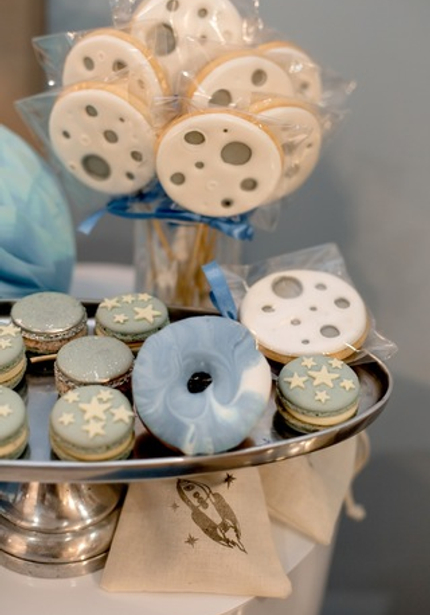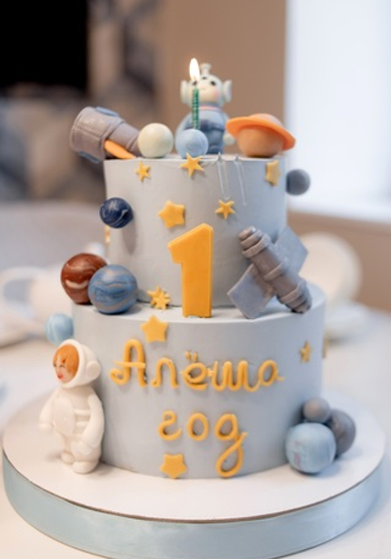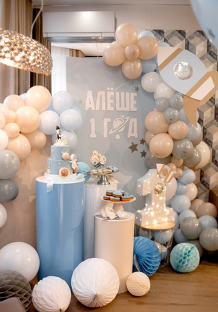 Первые дни рождения — самые нежные в плане оформления! Космос отлично подходит для годовасия мальчиков. В отличие вечеринок для детей постарше, эту можно оформить в нежных пастельных тонах, без агрессивных синего и черного.
