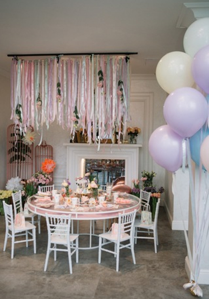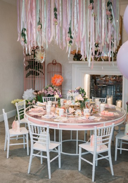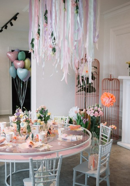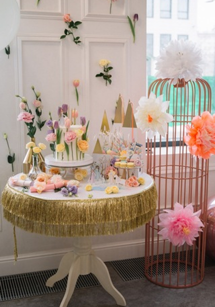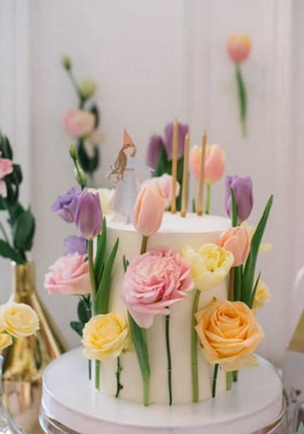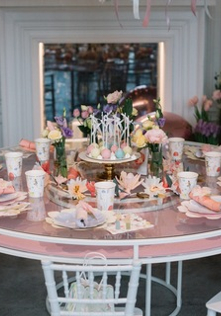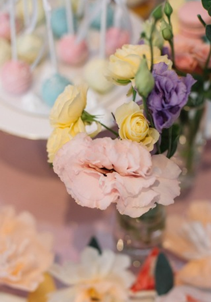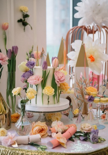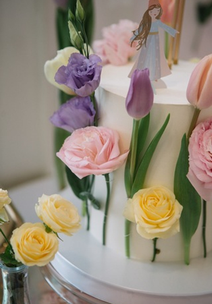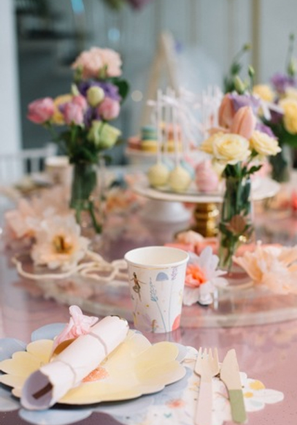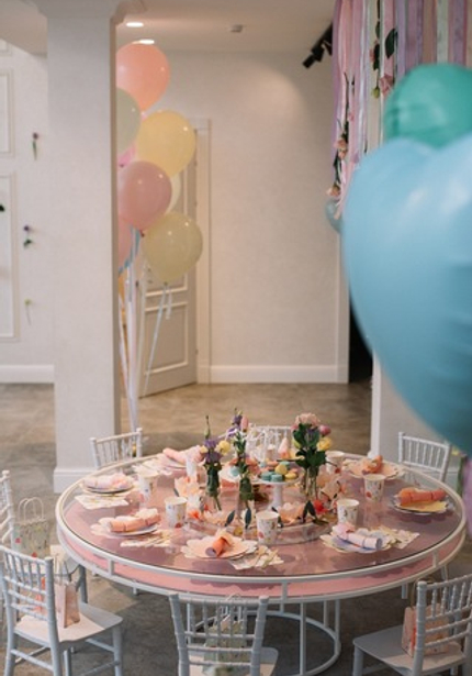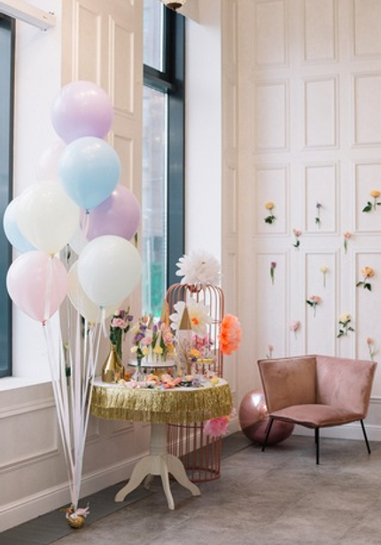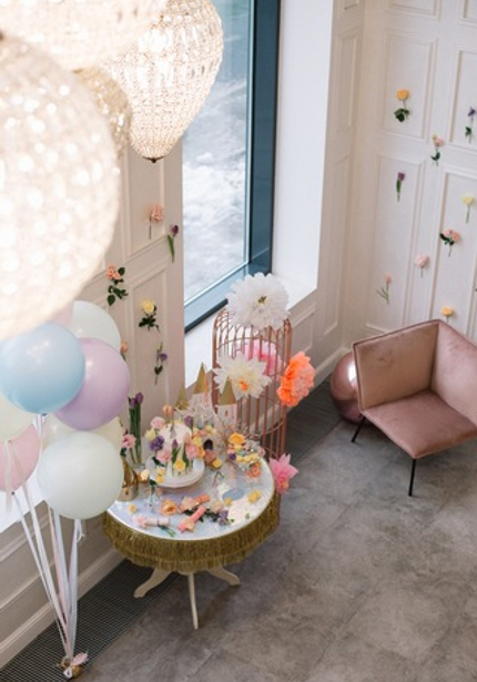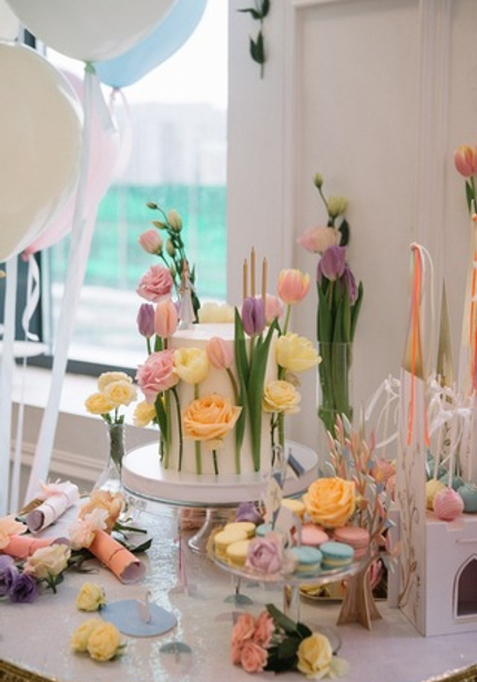 Нежный праздник с обилием живых цветов в декоре! Мы не только расставили везде пастельные букеты, но также украсили цветами стену и даже торт! Всю эту нежнятину дополнили пастельные шары, десерты и посуда Meri Meri с цветами и феями.
