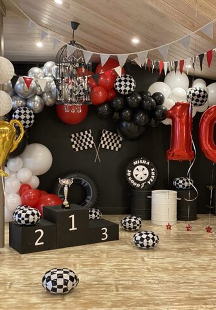 Среди мальчиков так много любителей гонок и машинок, что мы довольно часто устраиваем вечеринки на эту тему! Но каждый раз они разные и все уникальные — от гаммы до индивидуальных угощений и декора. Для Миши мы сделали стильный праздник в черно-белых тонах с красными акцентами — беспроигрышный вариант для мальчиков постарше!