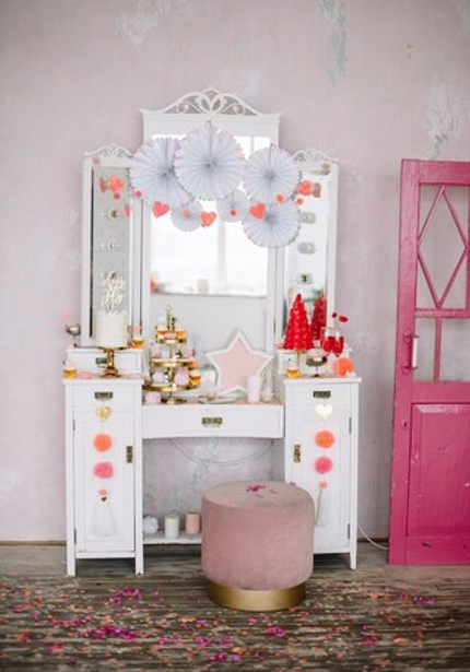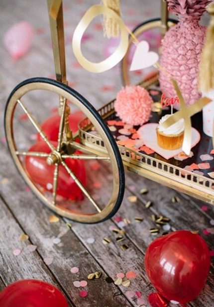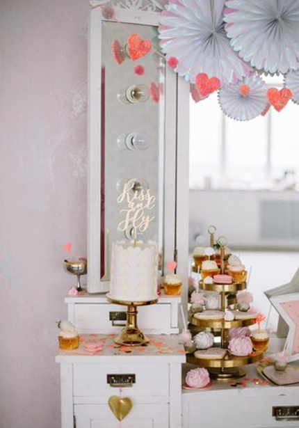 Сердечная коллекция от Meri Meri стала основой декора. Мы добавили в одну из зон винтажную тележку с угощениями, в другой находилось трюмо с еще большим количеством сладостей от Тани и Ксении. Атмосфера романтики не могла не вдохновлять на фотографии со счастливыми улыбками!