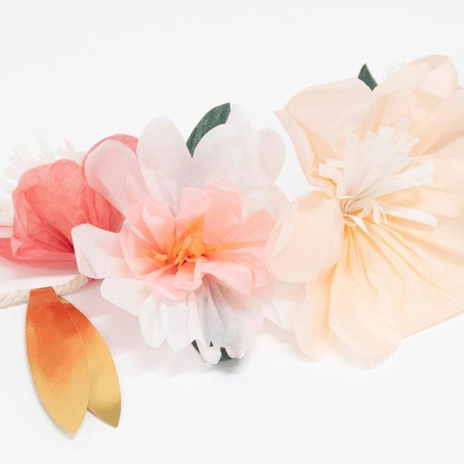 Преобразите пространство с помощью цветочных гирлянд! Их можно развесить по краю стола, на стене над сладким столом и протянуть под потолком.
