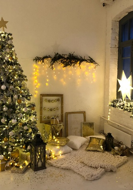 Роскошный золотой декор для тех, кто любит блеск, множество огоньков и пышность оформления. Превратим ваше жилище в настоящий рождественский дворец!