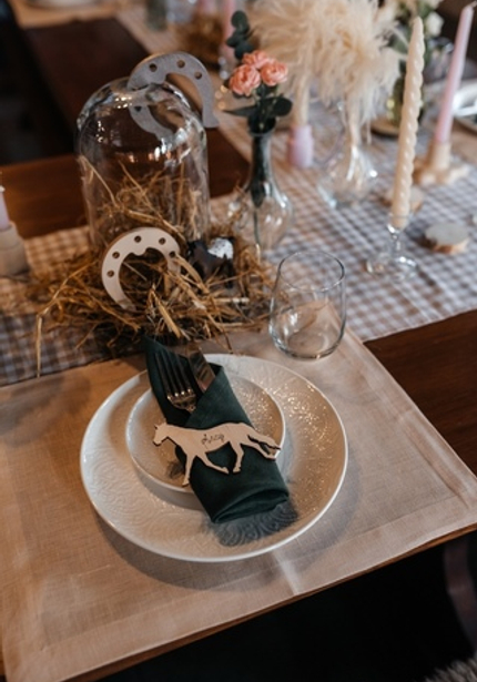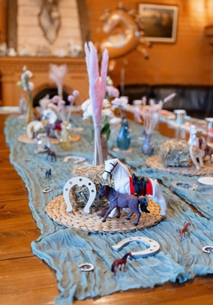 Для украшения использовали коллекцию Meri Meri, посвящённую конному спорту, и множество украшений, сделанных нашими руками — от гирлянды из тканевых флажков, то чудесной тематической цифры и пиньяты-лошадки.