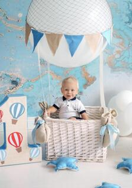 На годовасие всегда выбирают самые нежные и мечтательные тематики оформления! Мальчикам часто оформляют праздник с самолетиками, а воздушные шары подходят абсолютно всем! Женя изготовила множество украшений с этим символом: тематическую циферку, украсила шарами гирлянду и бутылочки для напитков.