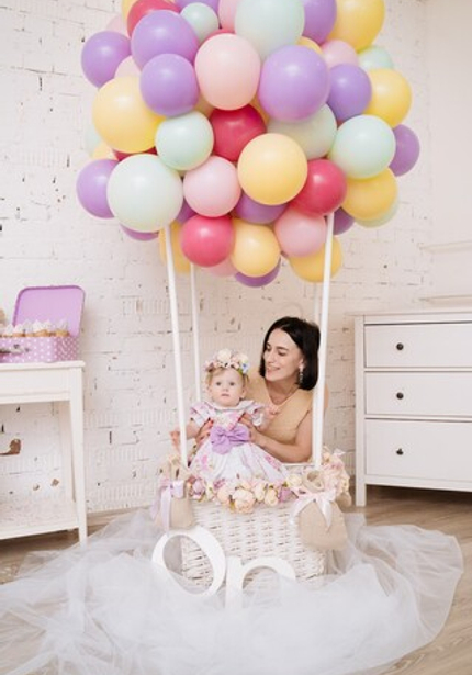 Мы очень любим годовасия — на этих праздниках всегда можно увидеть свежие идеи оформления. Когда детишки постарше, они сами выбирают тематику и часто им нравятся примерно одинаковые вещи. А для малышни всегда можно придумать что-то уникальное и интересное! Например, нежный и волшебный праздник с воздушным шаром! Совсем как в мультфильме Вверх! — вместо одного шара, целая связка ярких разноцветных шариков.