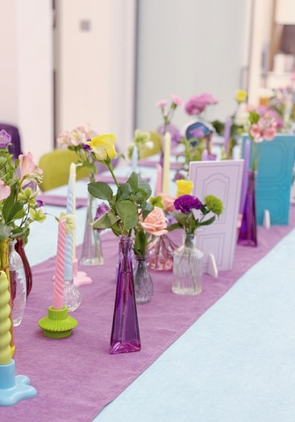 Декор сопровождал гостей от входной зоны, которую мы украсили красной лампочкой, до комнаты, где была самая красота. В холле были столы для мастер-классов: дети делали пончики и высаживали цветы в горшочки, которые они украшали в стиле мультиков.