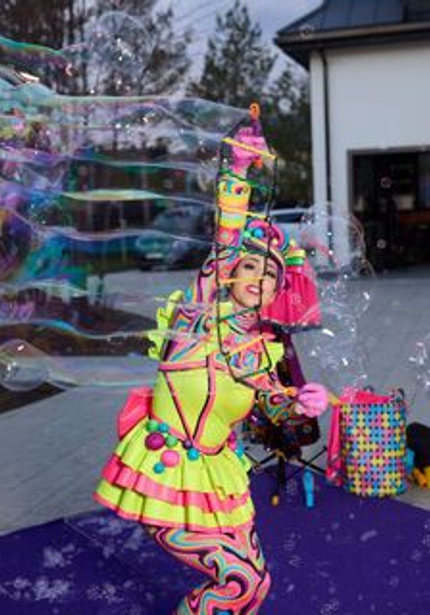 На улице детей ждало шоу мыльных пузырей, бьюти-бар, огромный батут и бумажная дискотека!