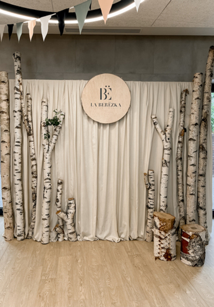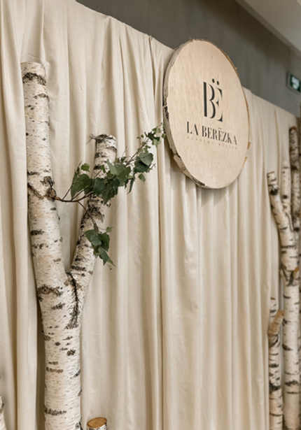 Очень часто нас зовут оформить выпускные для садиков и школ. В этот раз мы попали в удивительное место — академию La Berёzka, которая сочетает в себе и сад, и школу. Для их первого выпускного мы создали чудесную фотозону, которая отражала стиль и ценности заведения. Мы использовали натуральные ткани, логотип академии сделали на деревянном спиле, а на фоне поставили настоящие берёзки!