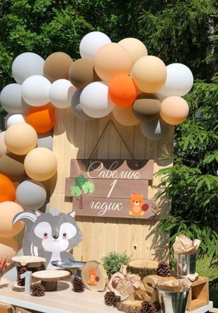 Тематика с лесными зверушками — очень универсальна и подойдет любому ребенку! Особенно здорово, если удастся отпраздновать день рождения на улице, тогда окружающая природа станет прекрасным фоном для всех украшений. Угощения на таких вечеринках подают на деревянных поставках или ставят на пеньки, украшая пространство шишками и зеленью. А изображения зверушек можно превратить в тематические украшения: колпачки, стаканчики, трубочки и многое другое.