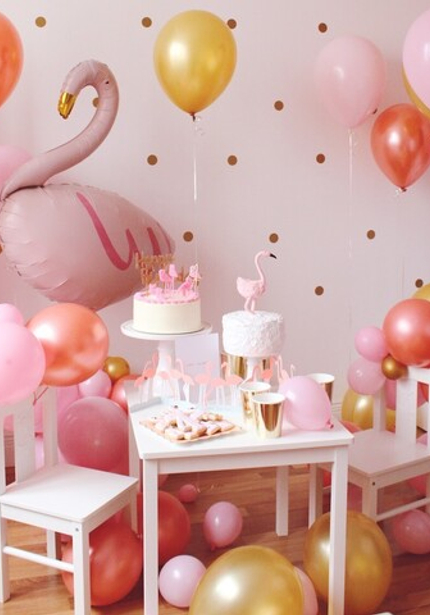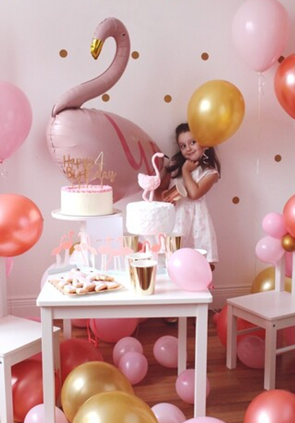 Розовый и золотой — роскошное сочетание для девчачьего дня рождения. Мама Ксения в очередной раз создала шедевр с помощью декора Meri Meri. Теперь в центре внимания коллекция «Фламинго». Множество шаров разных цветов и размеров, разбросанных по полу, это простое украшение, но, тем не менее, придающее пышность и праздничность любому декору.