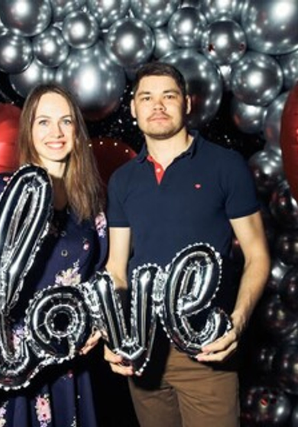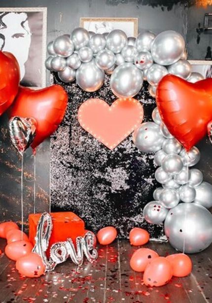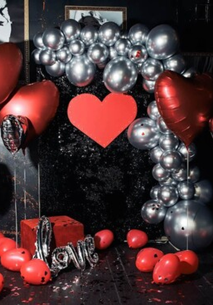Когда день рождения в феврале — валентинова тематика так и напрашивается! А какой девушке не понравится стильное оформление с сердечками? Для нашей именинницы оформили очень лаконичный праздник, в темных тонах, но зато с яркими акцентами красного цвета! Особенное внимание привлекал светильник-сердце в самой середине фотозоны.