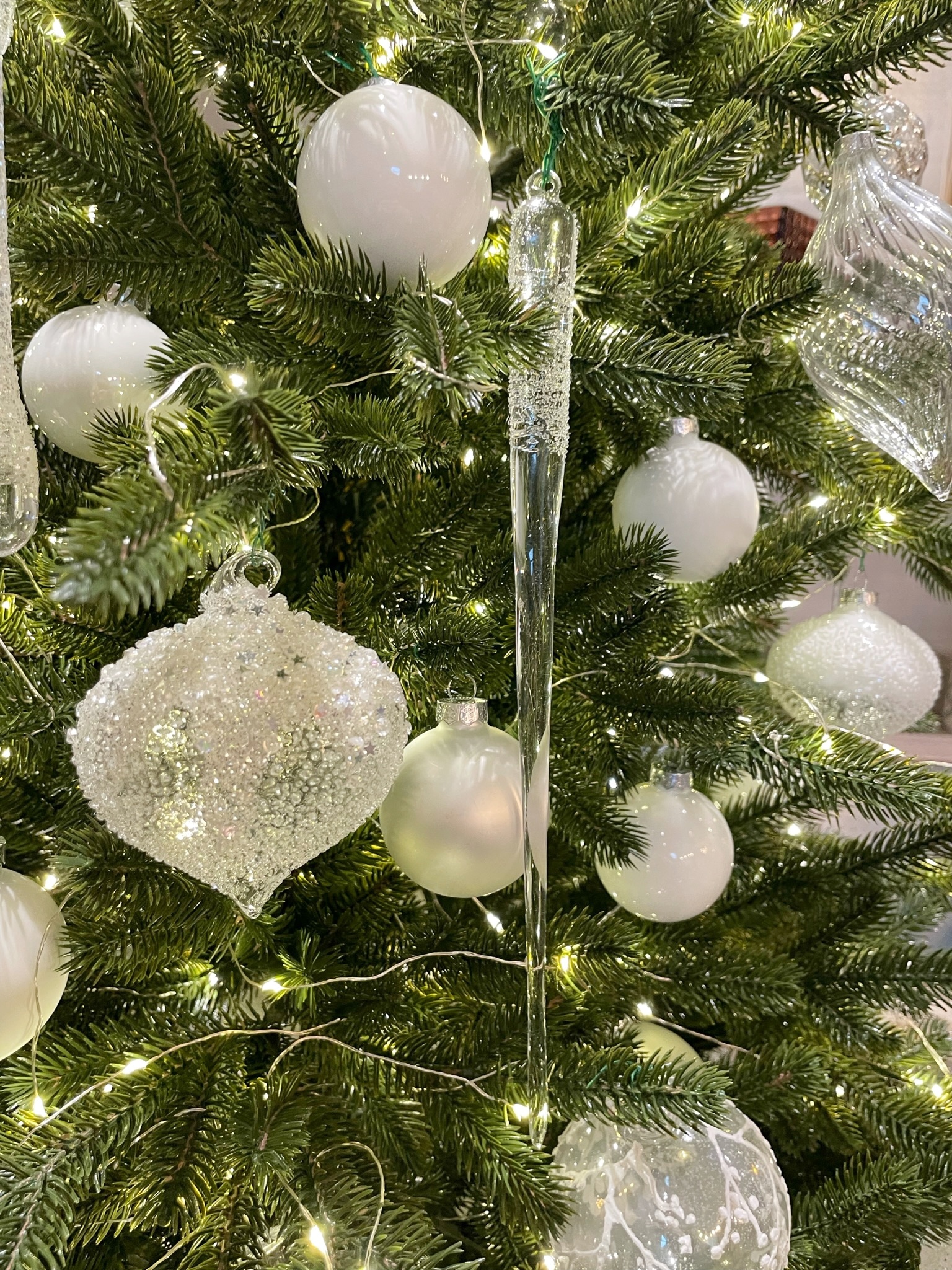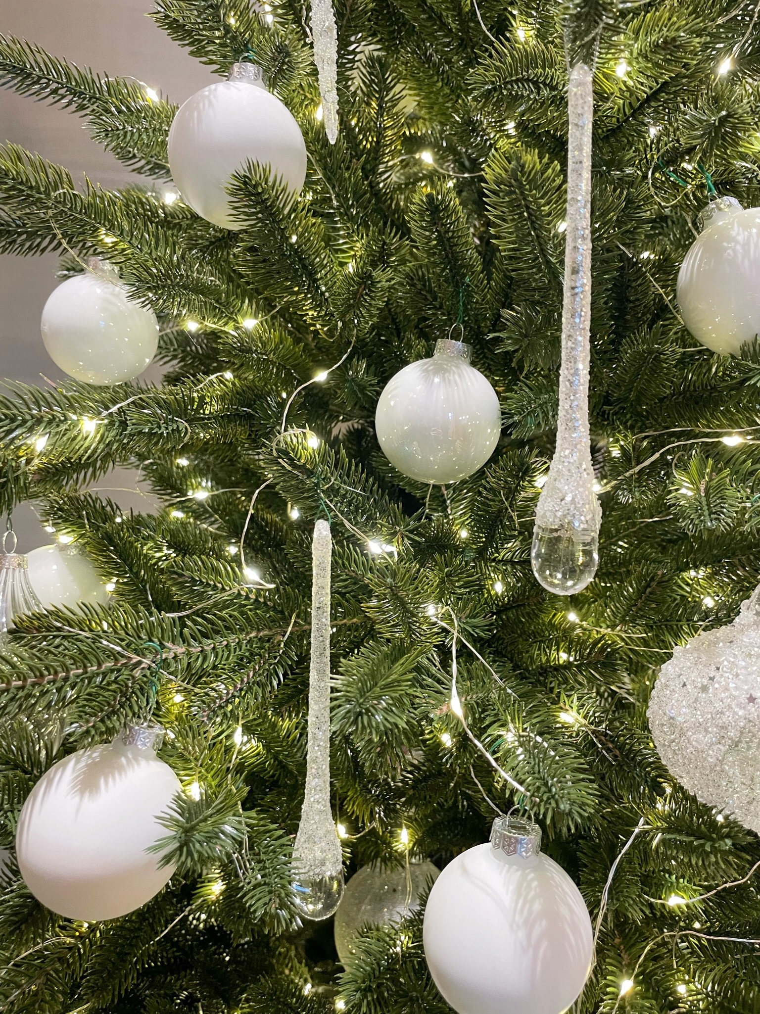 Эта ель словно соткана из зимней магии. Её густая хвоя премиум-качества сияет встроенной гирляндой, а прозрачные игрушки, похожие на ледяные цветы, переливаются в свете огней. Хрустальные шары искрятся, словно капли росы, отражая каждый лучик и создавая ощущение сказки и волшебства.