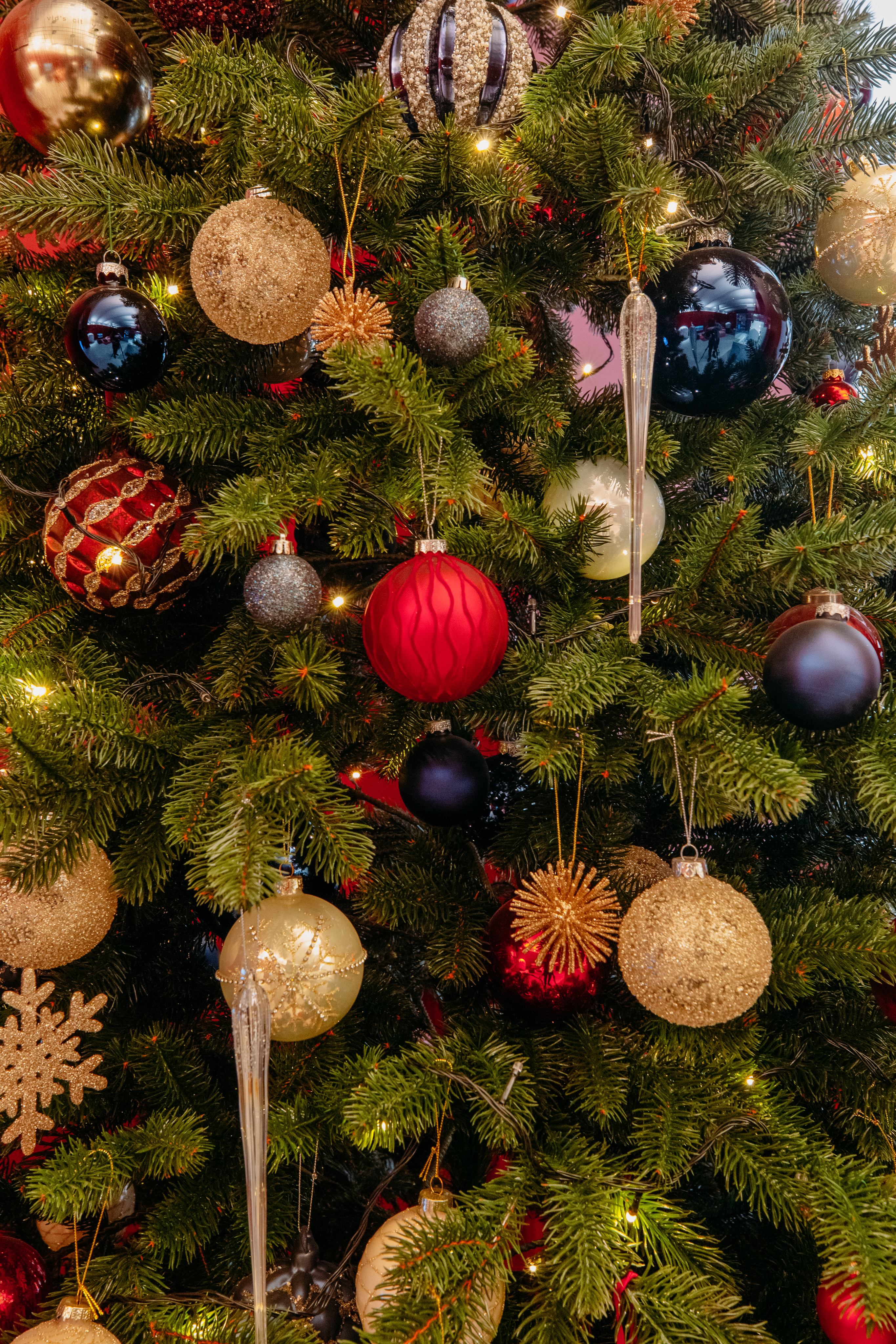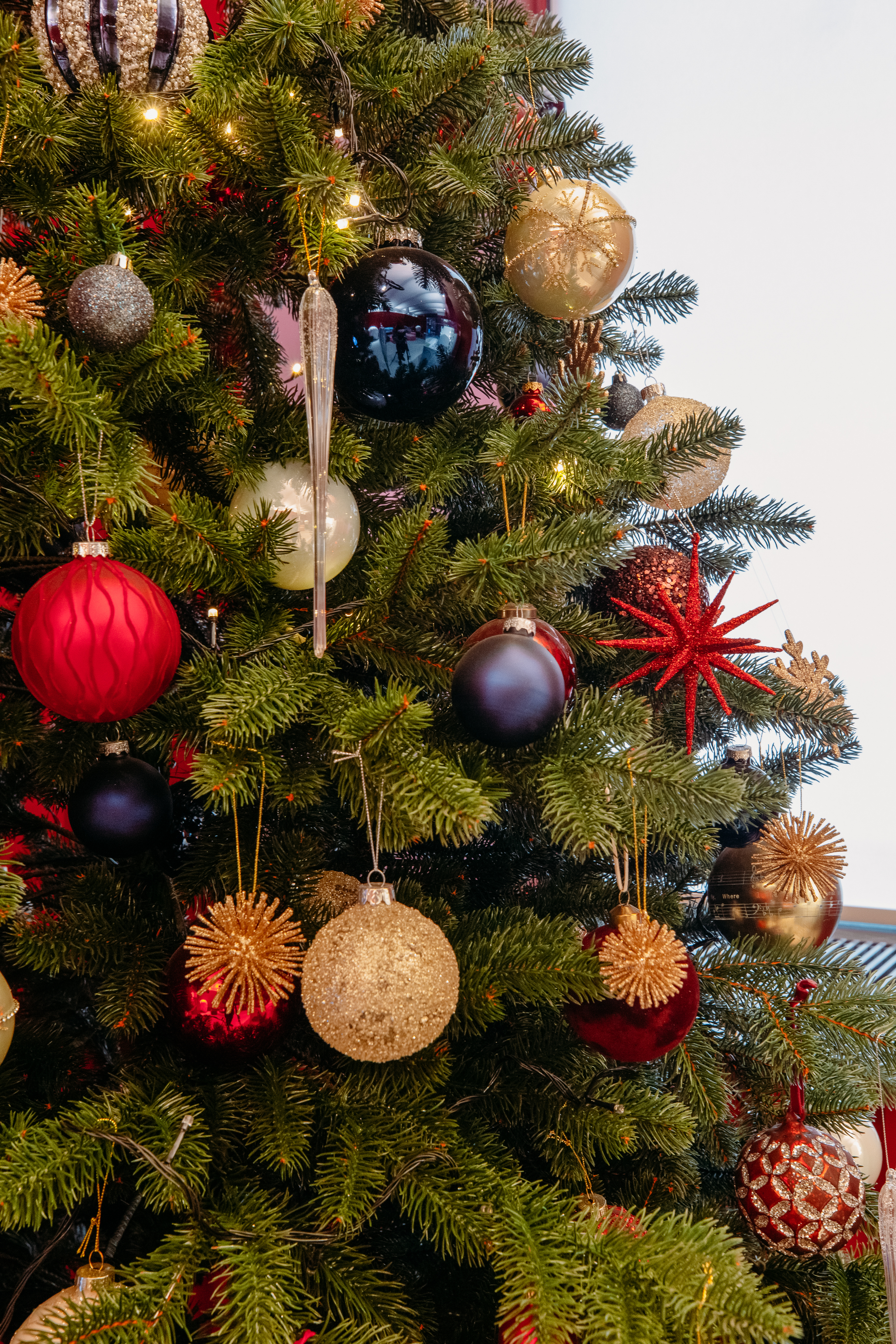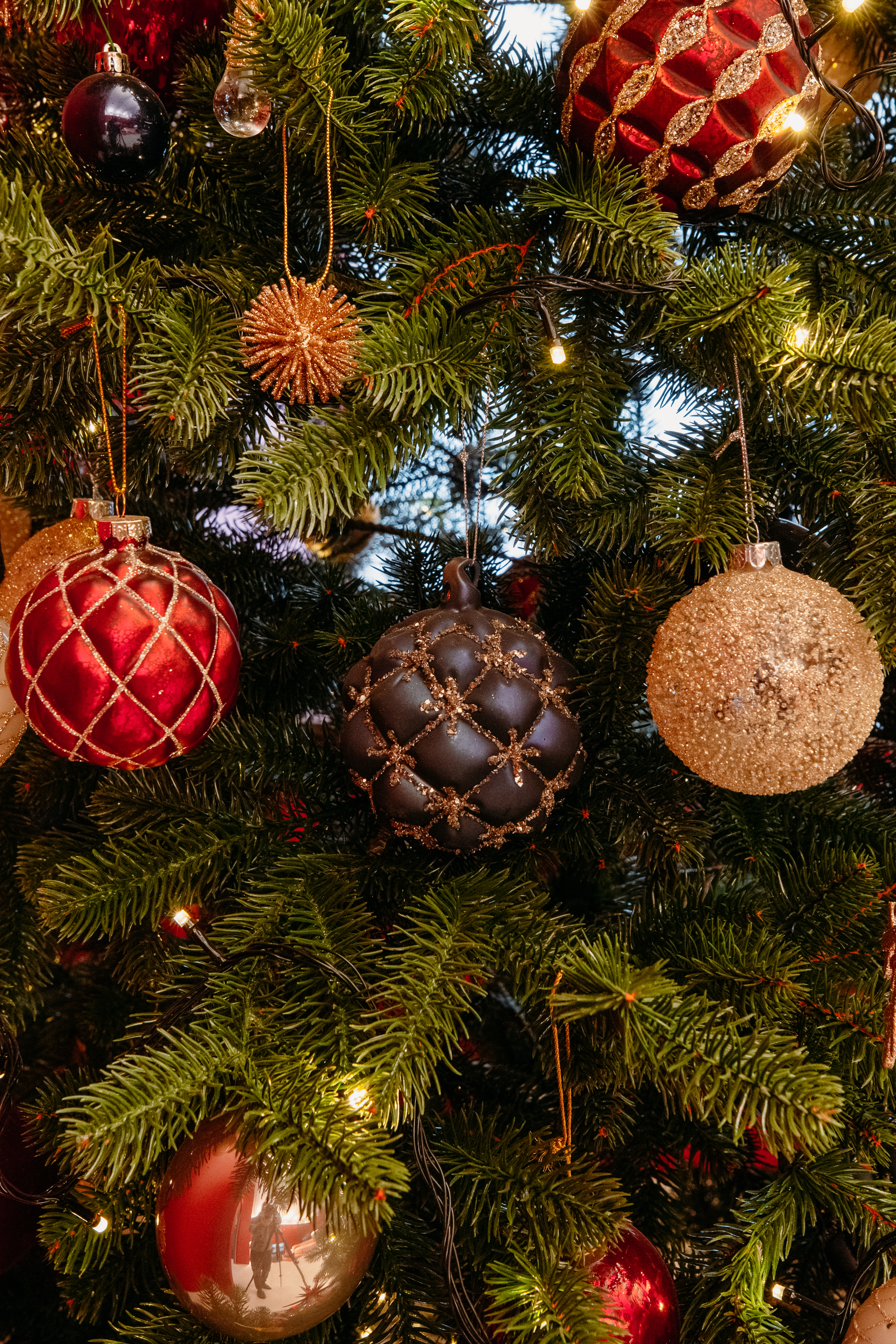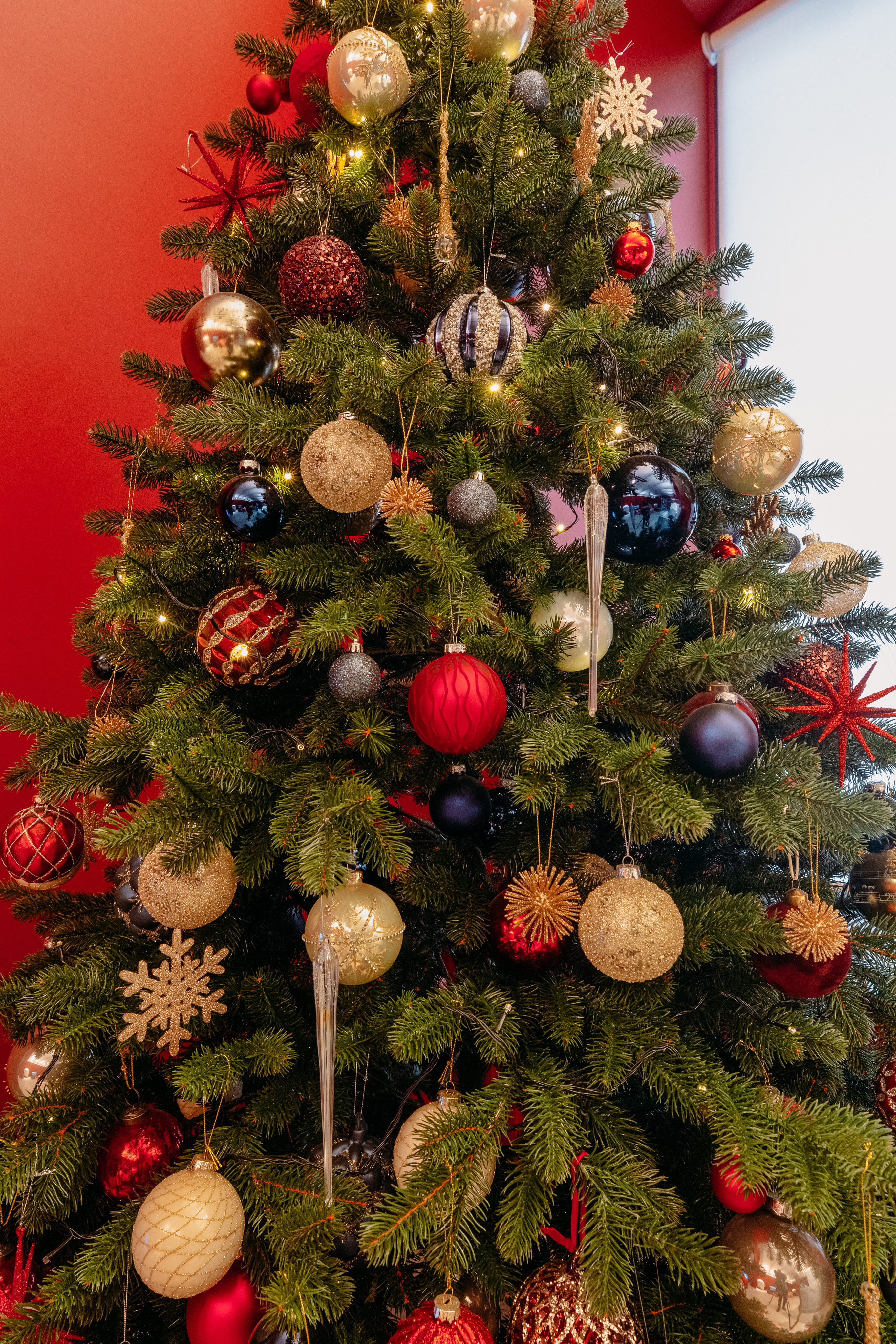 ✔ Комплект игрушек разных диаметров: 50% пластик, 50% стекло