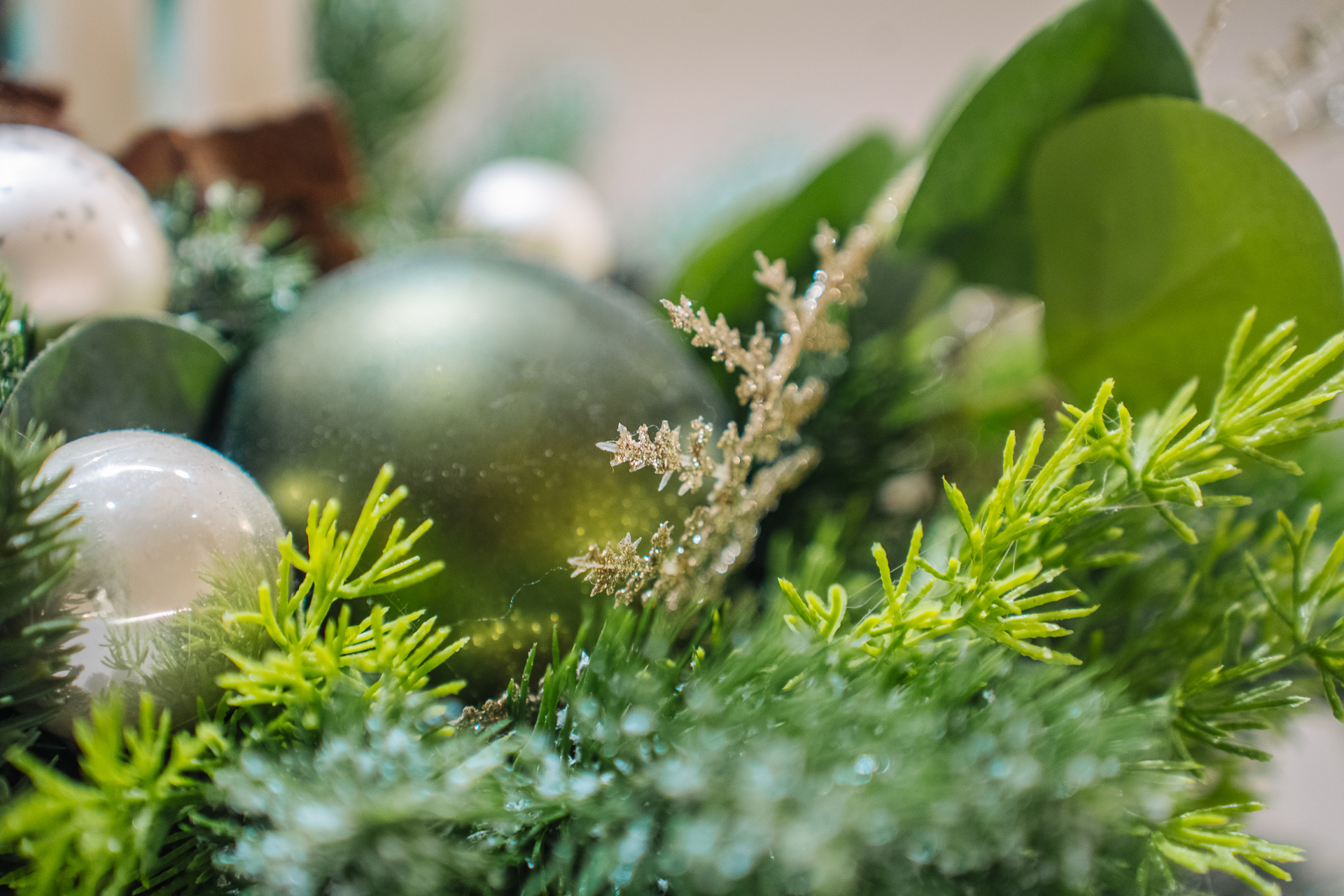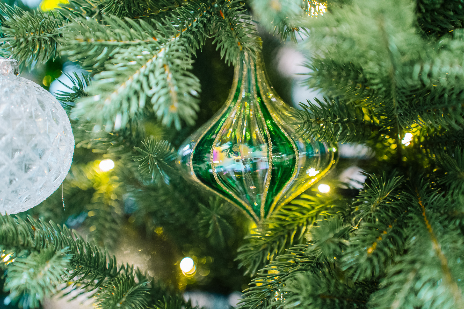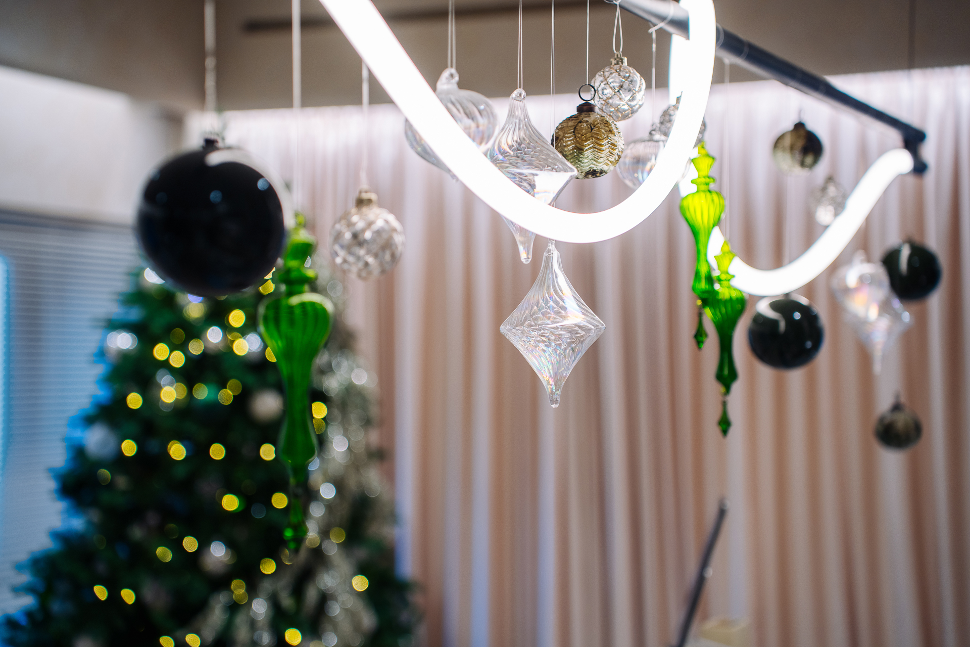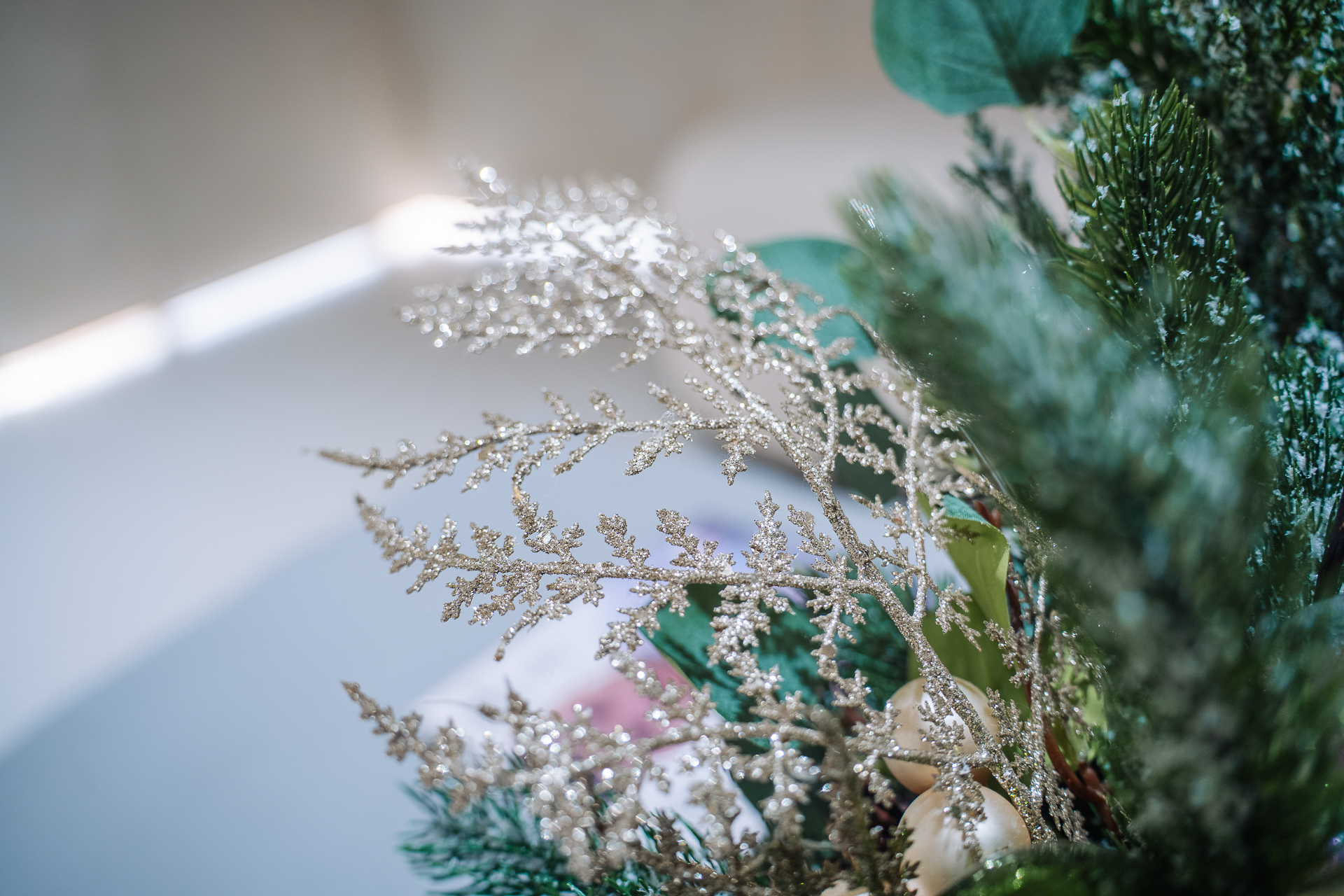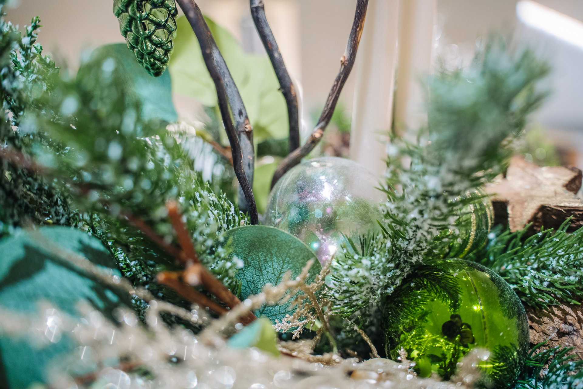 Эта ель — воплощение волшебства и элегантности. Её густая зелёная хвоя из литого материала оживает под сиянием встроенной гирлянды, а украшения в белых и глубоких красных оттенках наполняют интерьер теплом, уютом и атмосферой настоящего торжества. Под елью расположены декоративные подарки, завершающие образ и превращающие её в главный символ праздника.