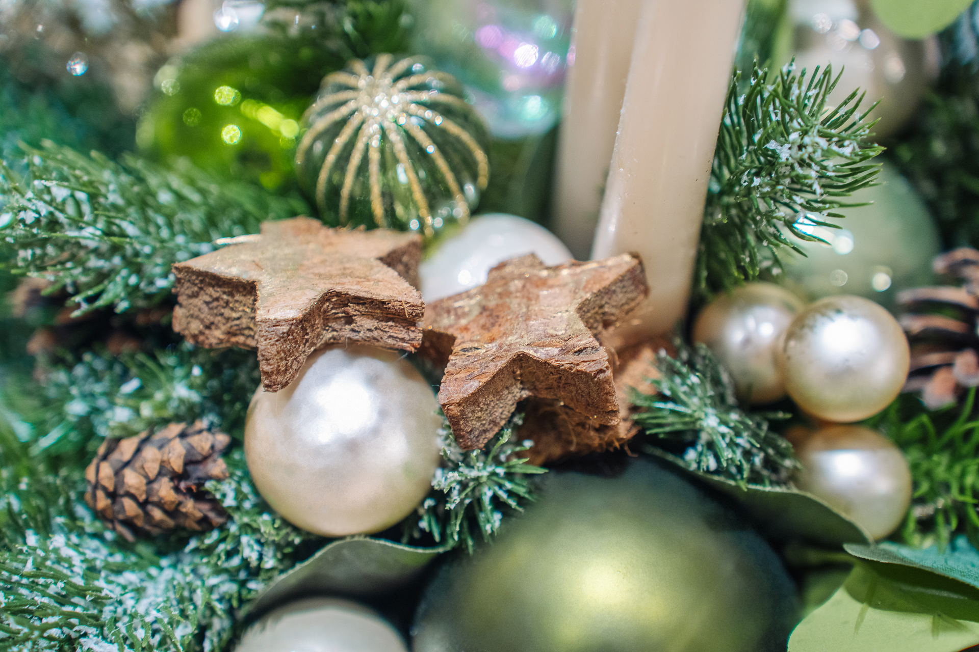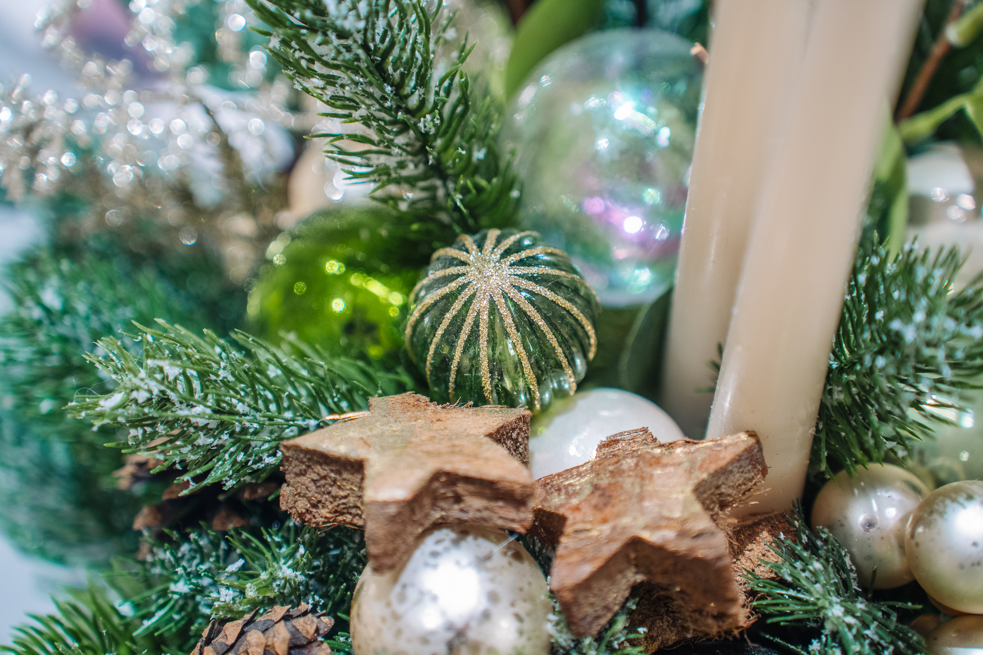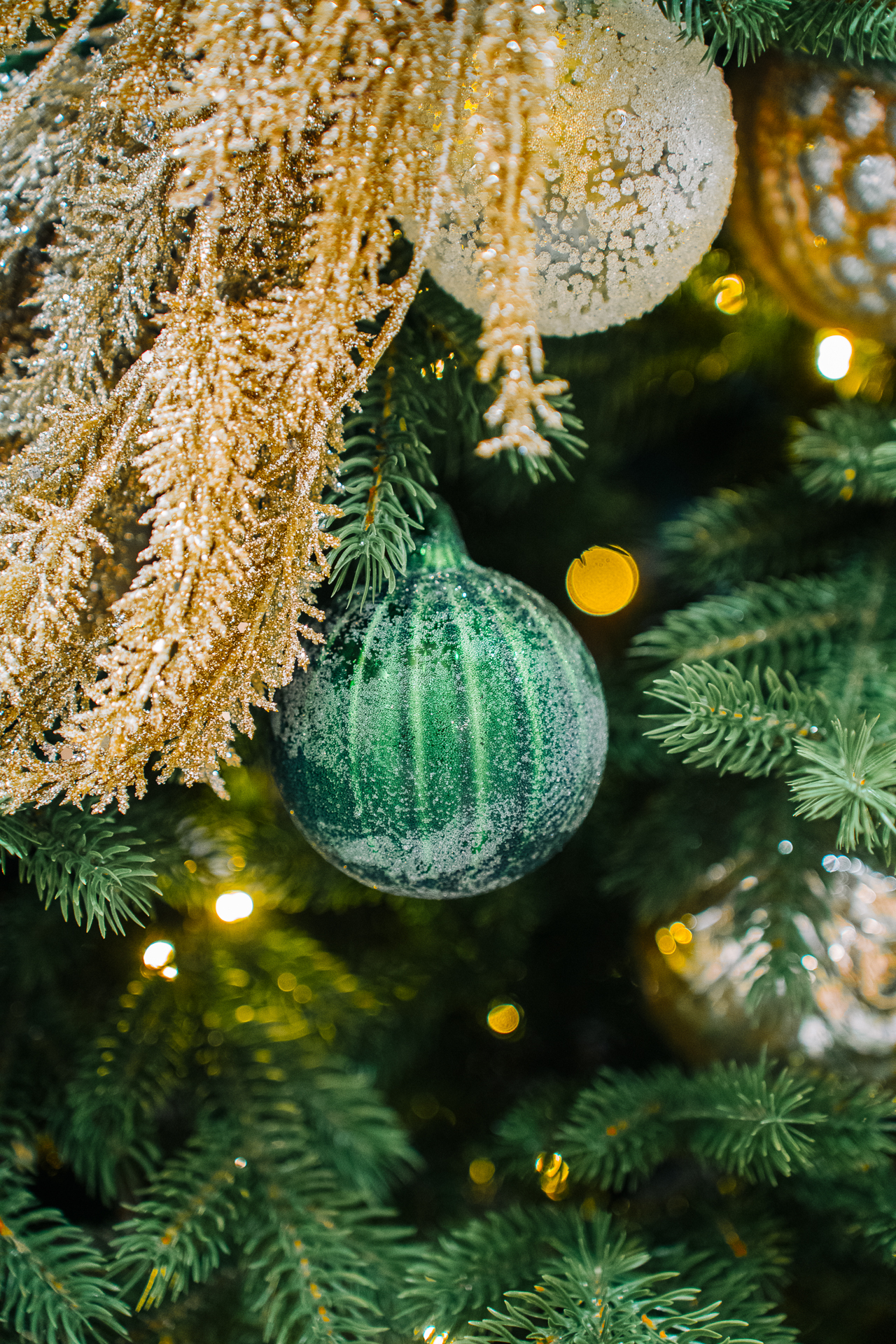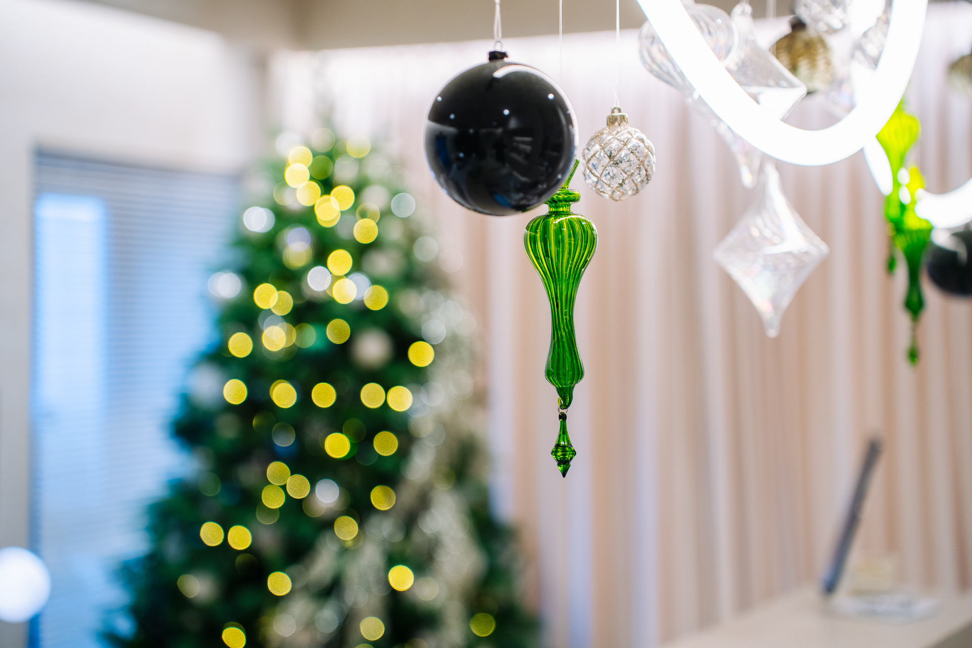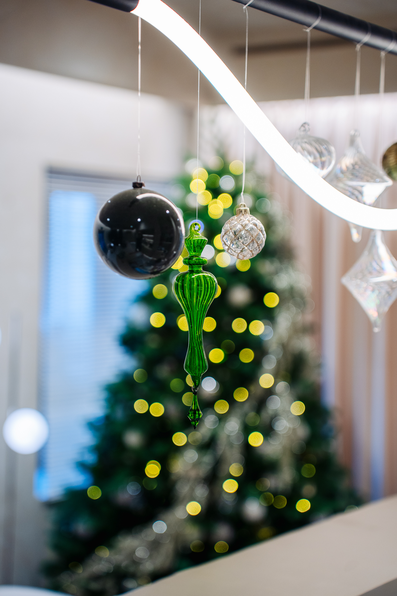✔ Комплект игрушек разных диаметров: 50% пластик, 25% стекло, 25% дизайнерские украшения и фигурки