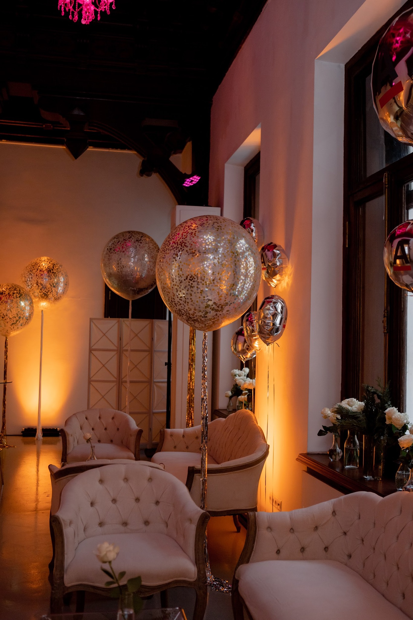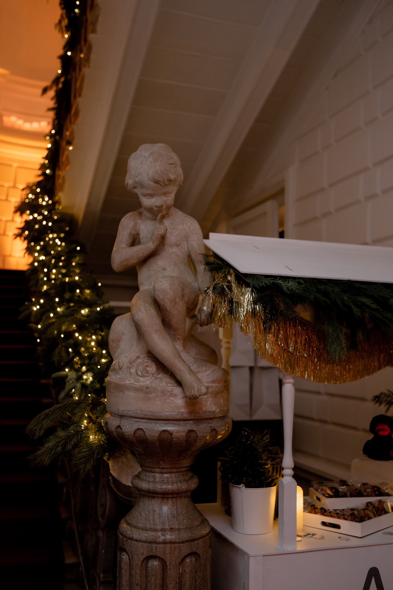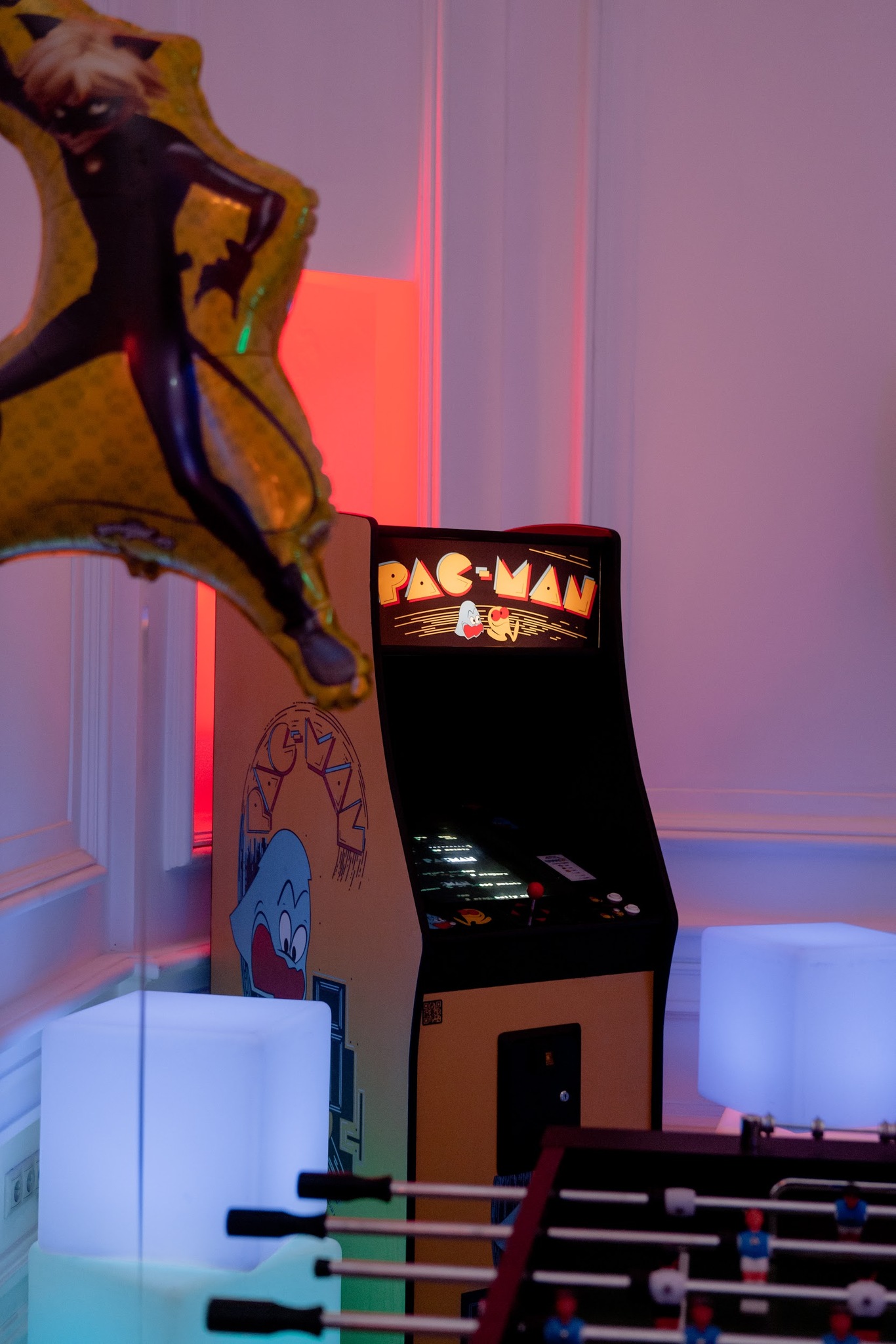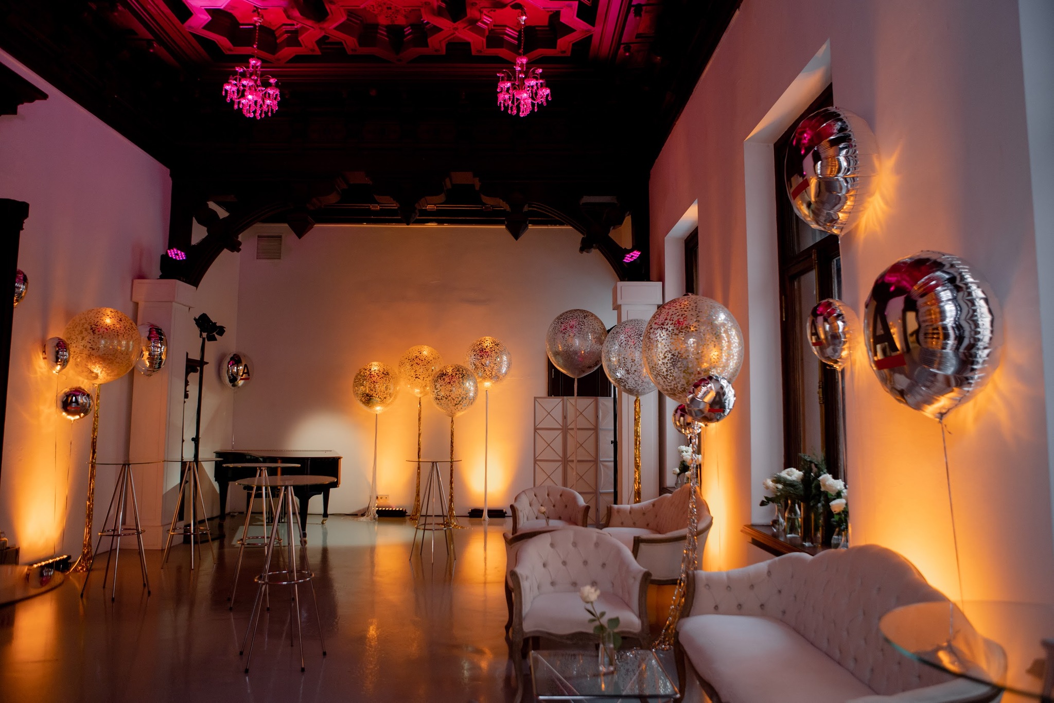 Шикарный и волшебный корпоратив для банка. Мы оформили его в стиле сказочного бала Щелкунчика: две фигуры в полный рост встречали гостей на входе, а в центре зала всех ждала огромная ёлка. Для менее официальной части мы сделали игровую комнату в более современном стиле.