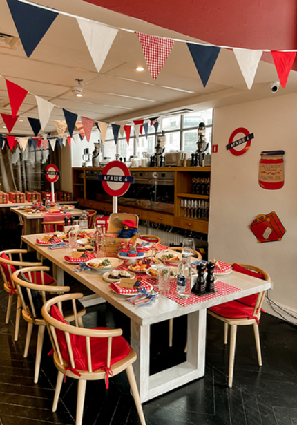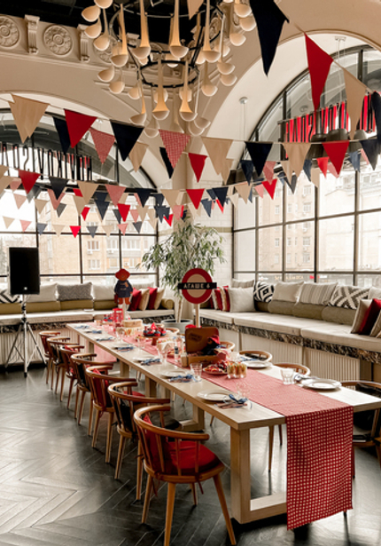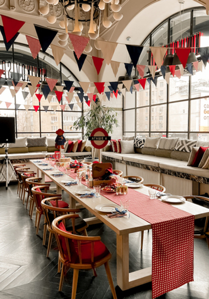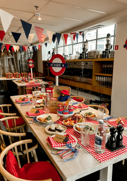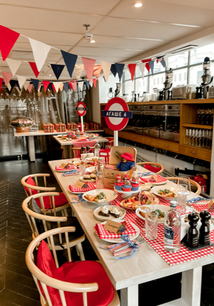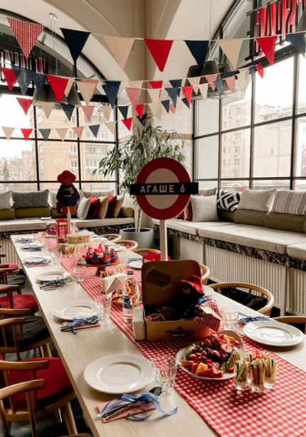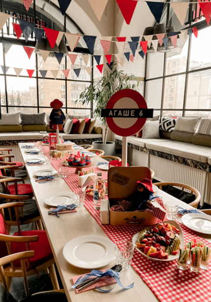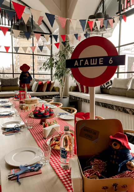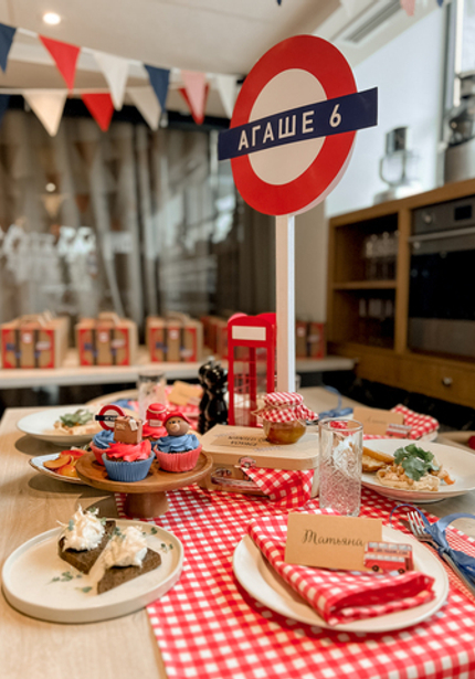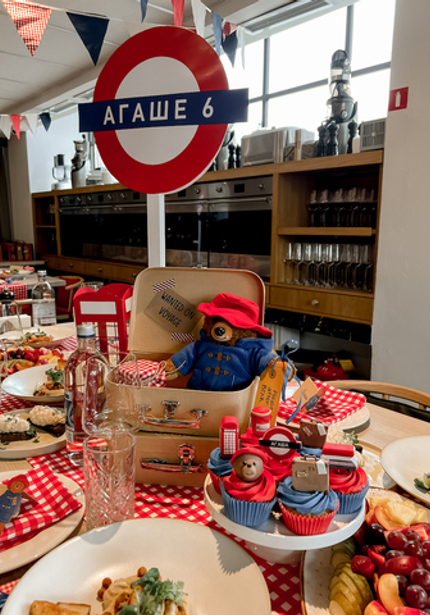 Атмосфера Лондона в каждой детали праздника — именно таким мы и задумывали праздник в стиле Медвежонка Паддингтона. После путешествия на двухэтажном автобусе дети попали в кулинарную студию Новикова, где они готовили апельсиновый джем.