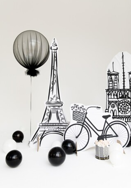 Умеем делать не только яркие радужные вечеринки, но и стильные в сдержанных цветах! Посмотрите на эту французскую вечеринку — черно-белое сочетание не обязательно выглядит резко, главное, соблюсти баланс, сделав белого больше и добавить нежные акценты. Мы сделали розовые: тортик, кресло, живые цветы! А самое классное, что подобное оформление подойдет для любого возраста — как для совсем малышек, так и для женщин.