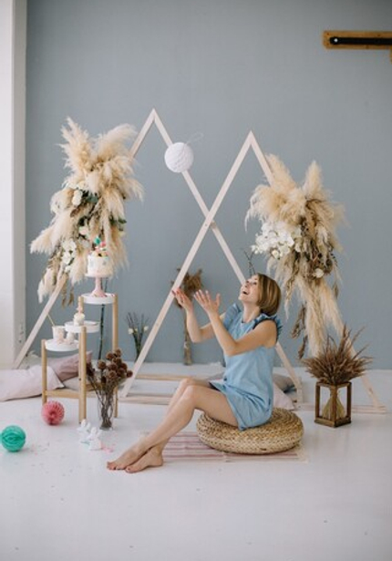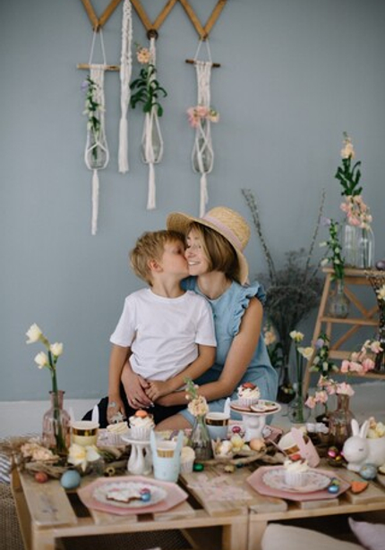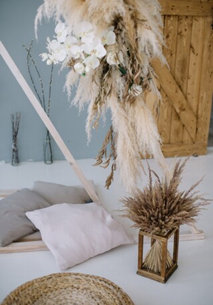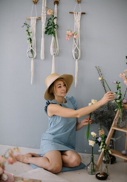 Все самое лучшее от стиля бохо воплотилось в фотодне на Пасху. Кашпо в технике макраме, различные стеклянные вазочки с цветами и вербой и композиции из сухоцветов.
