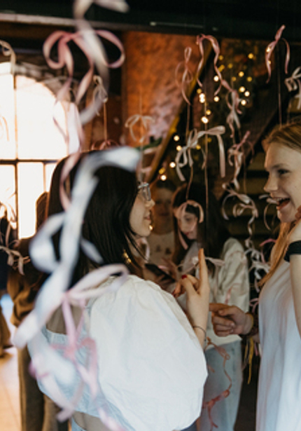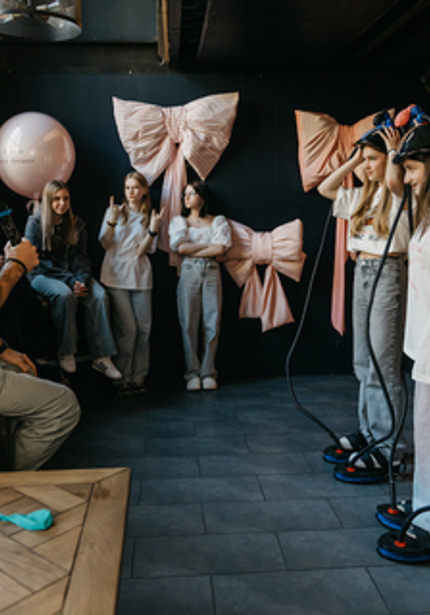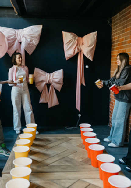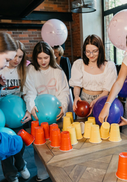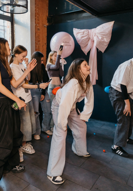 Организовать вечеринку для девочки-подростка — сложная задача. Нужно соблюсти баланс между детским и взрослым праздником, сделать его красивым и нескучным. Кажется, у нас всё вышло, ведь именинница была довольна! Мы украсили стены трендовыми бантами из ткани, добавили кастомные воздушные шары и придумали подходящую развлекательную программу с челленджами.