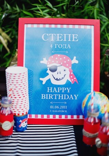 Нас взяли на абордаж, но мы справились, ведь у нас была коллекция декора «Пираты». Пришлось отдать маленьким пиратам все вкусные угощения и рассказать, где зарыты сокровища! А знаете, ведь родителям праздник понравился не меньше, чем детям, они тоже веселились и клеили на себя пиратские татуировки. Посмотрите на кейк-попсы, нам кажется они высший класс, к тому же их поставили в шкатулку с сокровищами, это очень интересная идея.