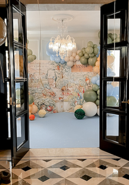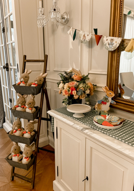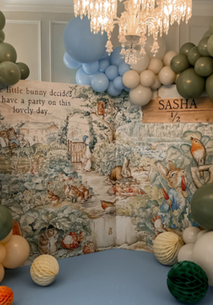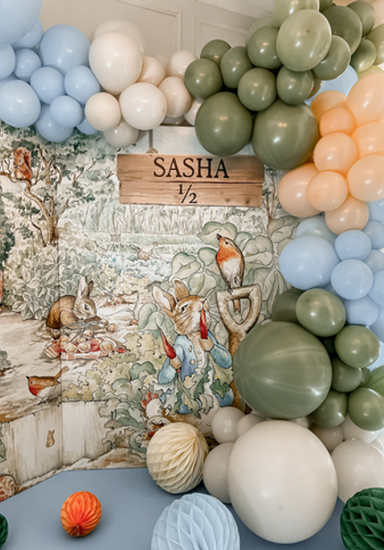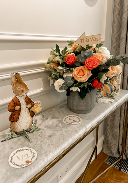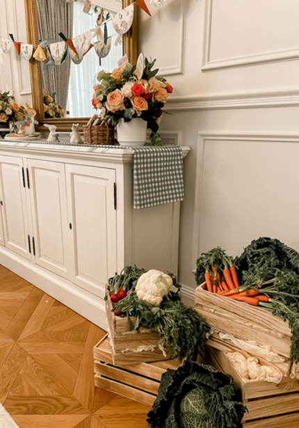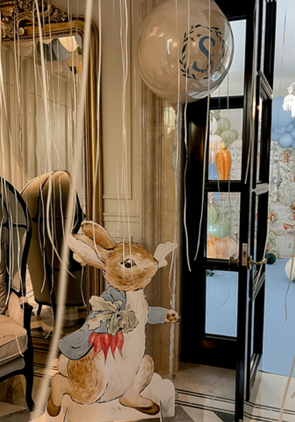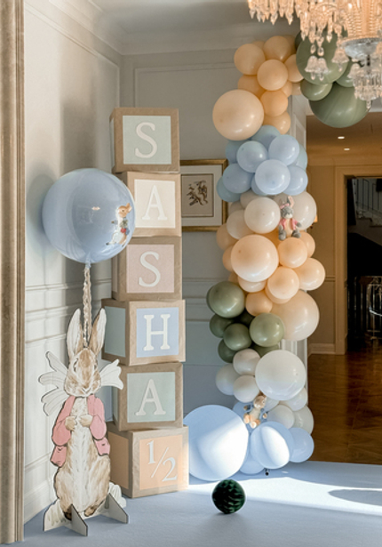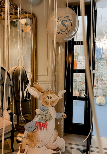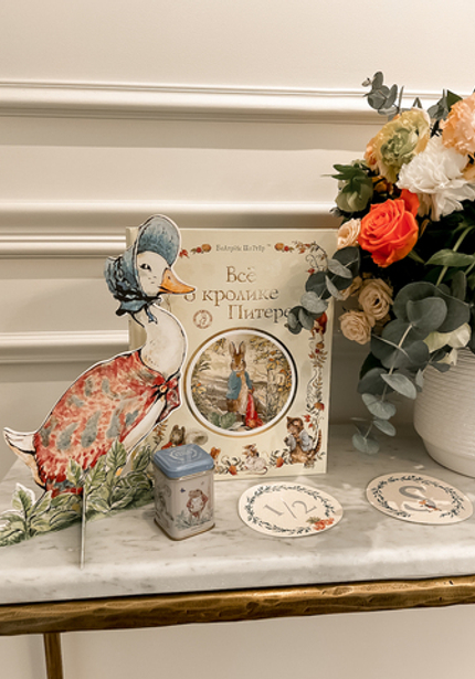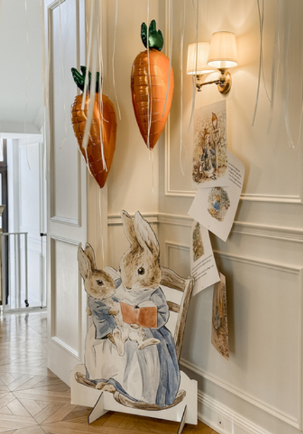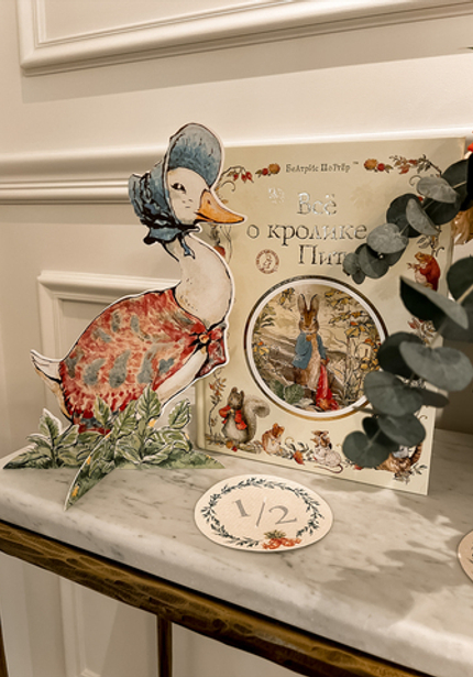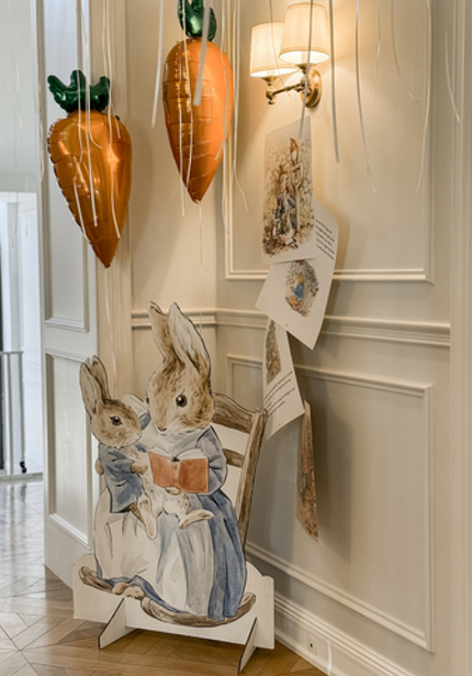 Нежный день рождения с Кроликом Питером — в честь 6 месяцев Саши. Обратите внимание на картонные фигуры — это не распечатка рисунков автора, а нарисованные от руки иллюстрации от дизайнера.