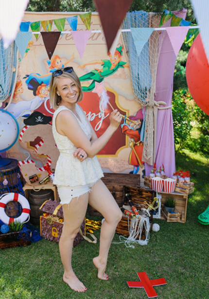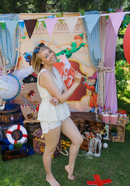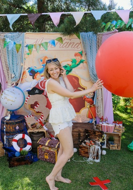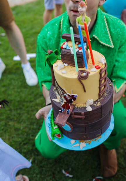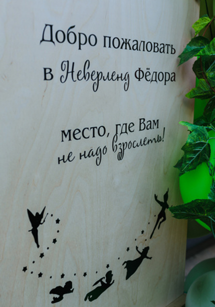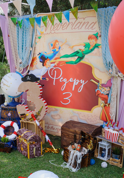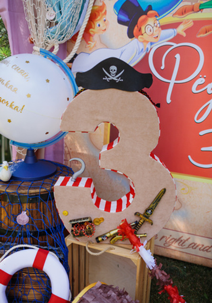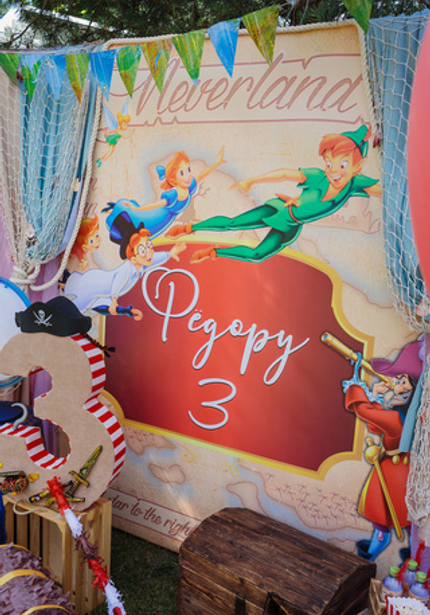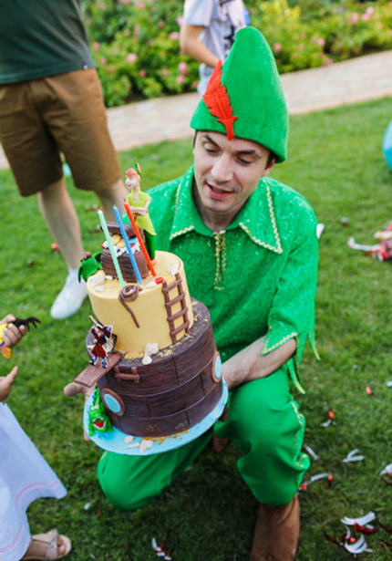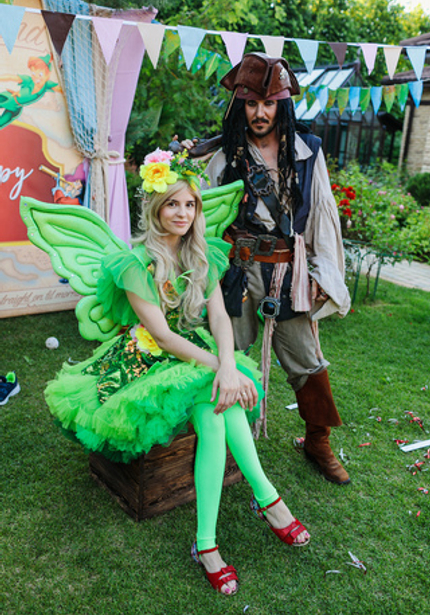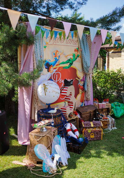Для трехлетия Федора мы обустроили самый настоящий Неверленд во дворе дома — тут был не только волшебный декор и сказочные угощения, но и фея Динь-Динь, Капитан Крюк и сам Питер Пен.