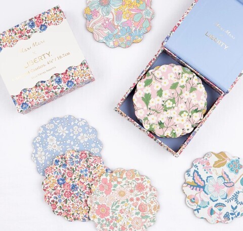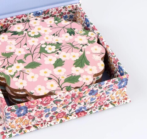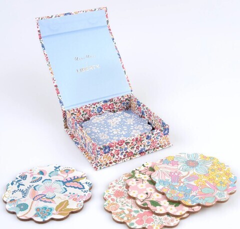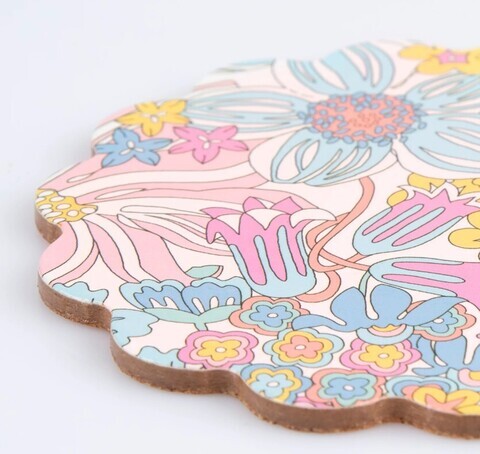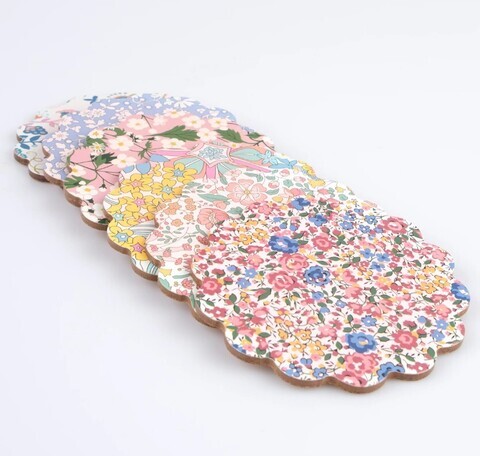 - Набор из 6 круглых подставок из композитного дерева с различными рисунками в стиле Liberty с цветочным принтом.