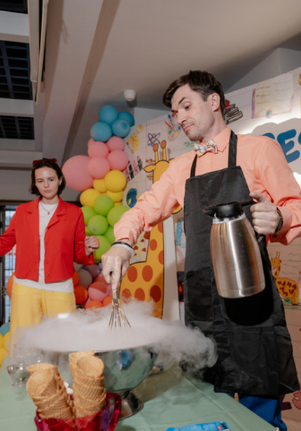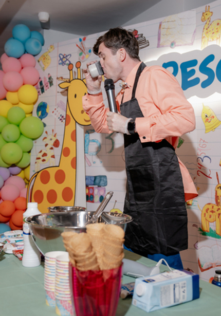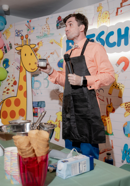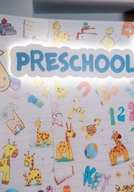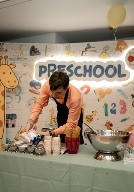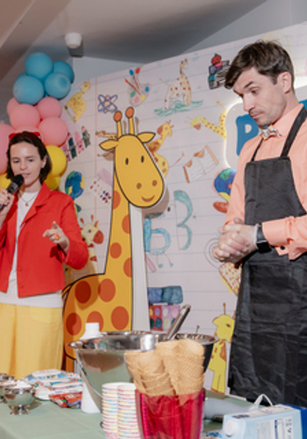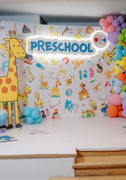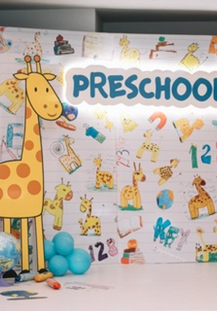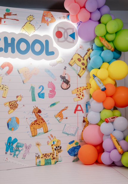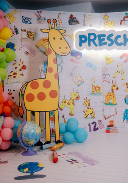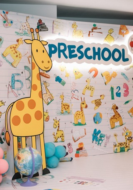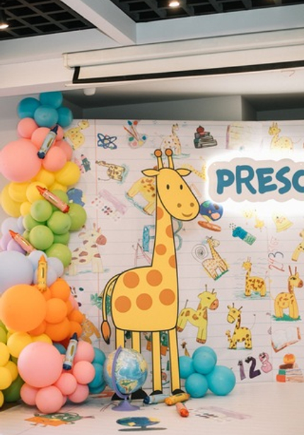 Мы попросили детишек нарисовать жирафов и другие символы, которые ассоциируются у них с учёбой и знаниями. Получились очень много милых рисунков, которые мы отсканировали, чтобы создать классную фотозону.